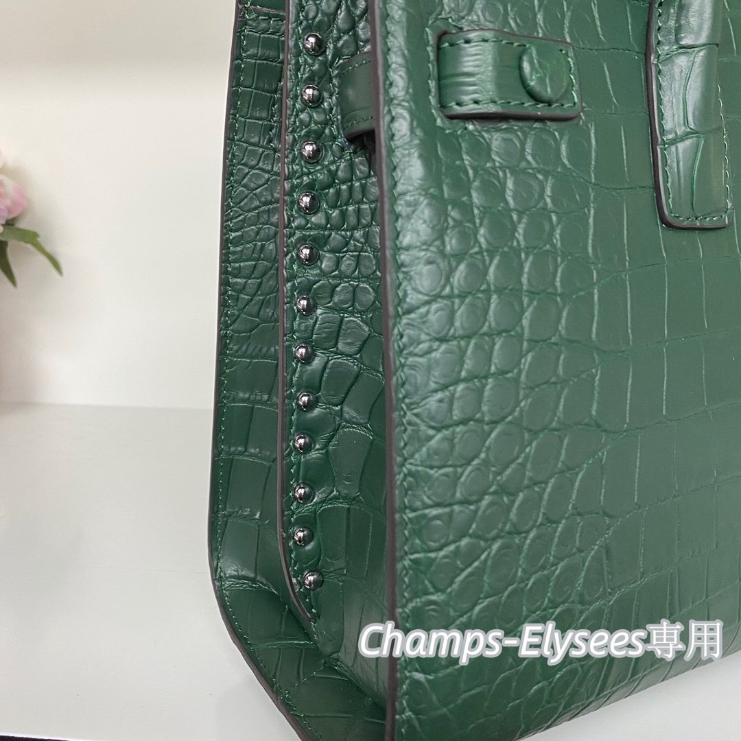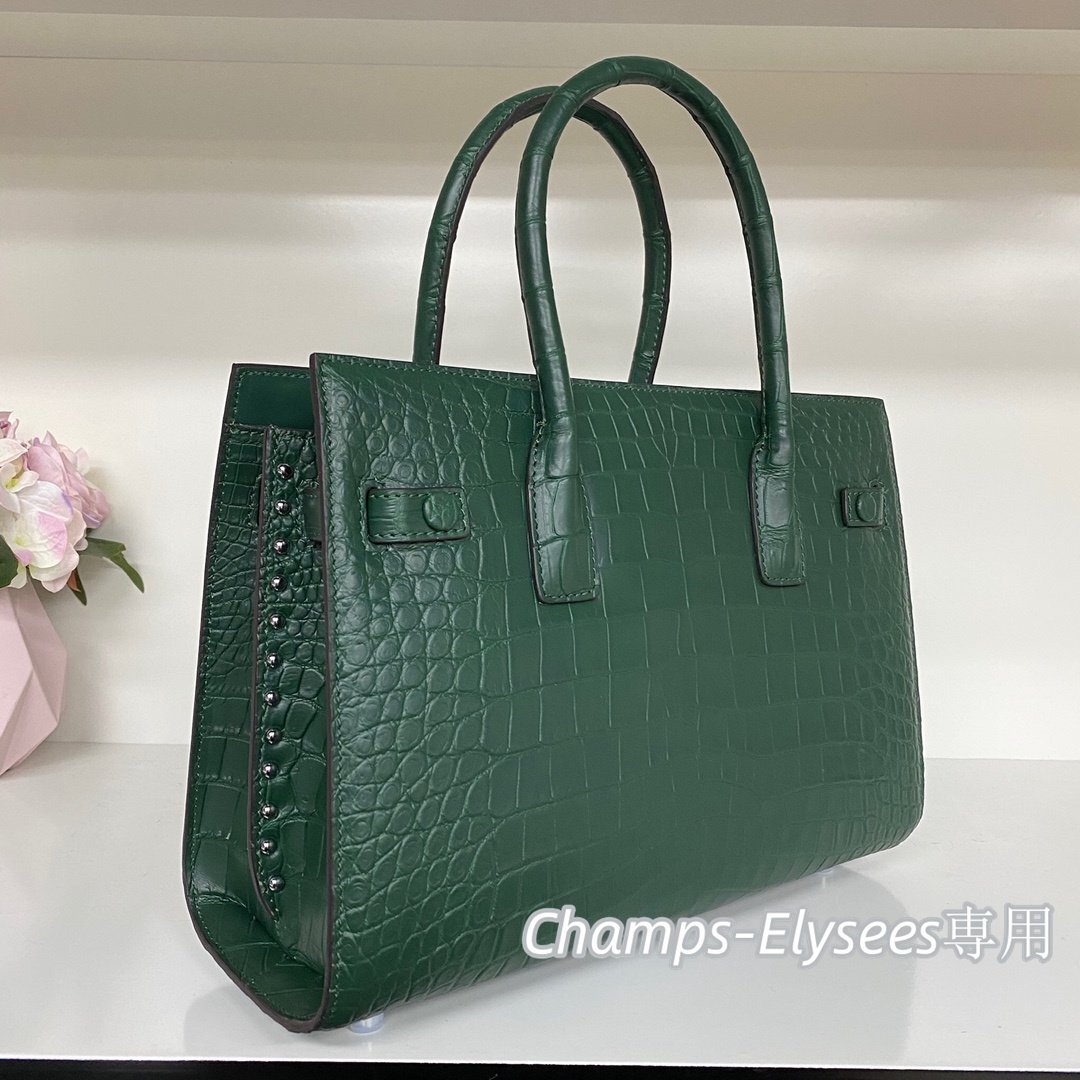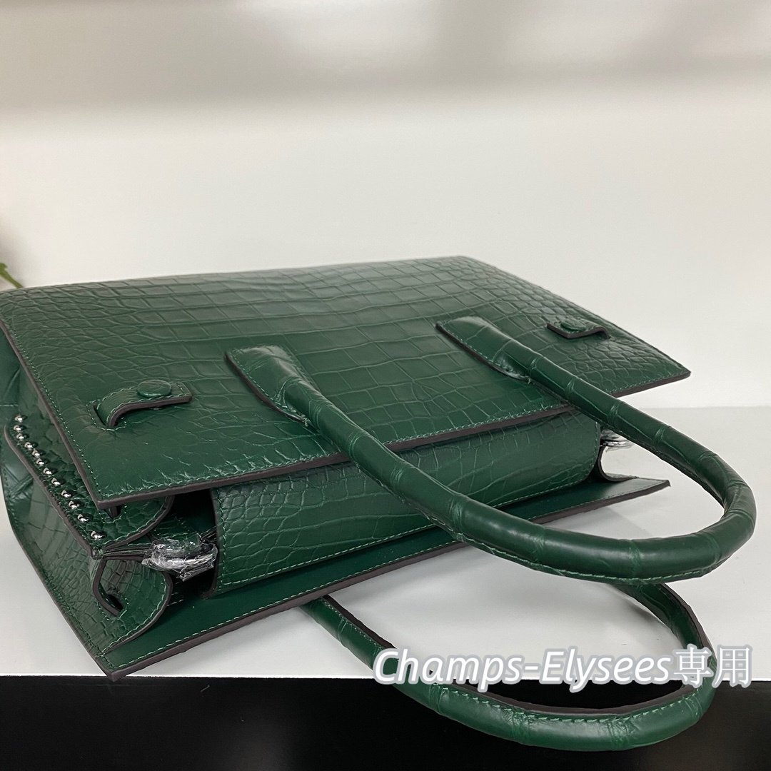 上級感見せ クロコダイルレザー 貴重品 ハンドバッグ レディースバッグ OLバッグ 本物鰐革 腹革センター取り グリーン