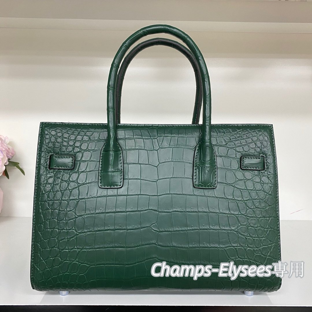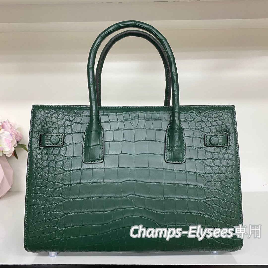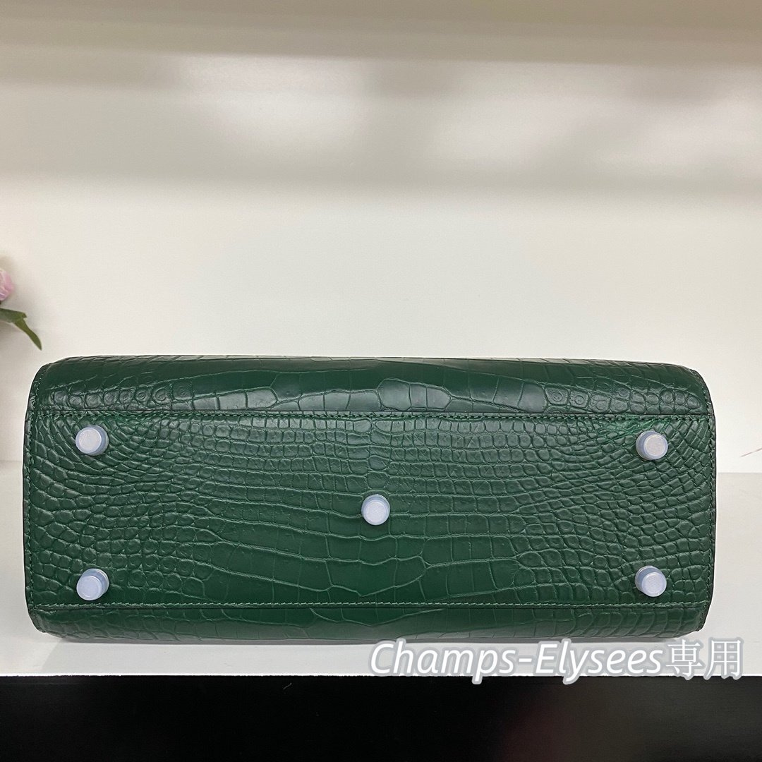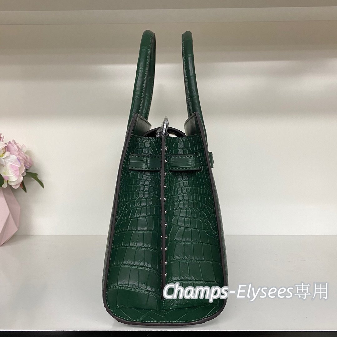 上級感見せ クロコダイルレザー 貴重品 ハンドバッグ レディースバッグ OLバッグ 本物鰐革 腹革センター取り グリーン