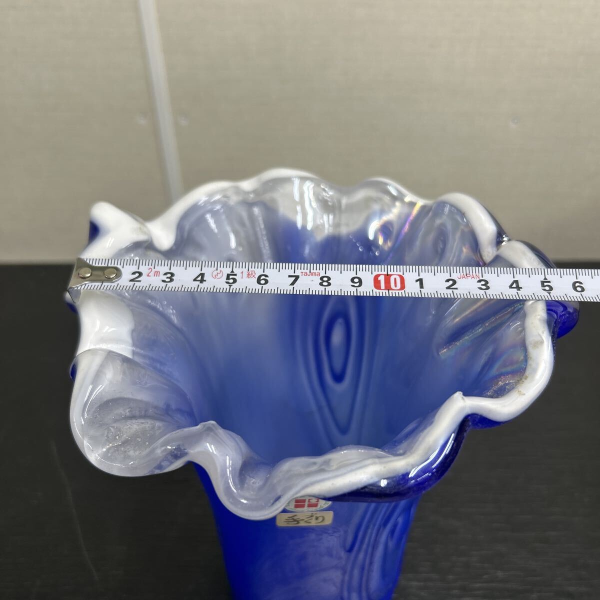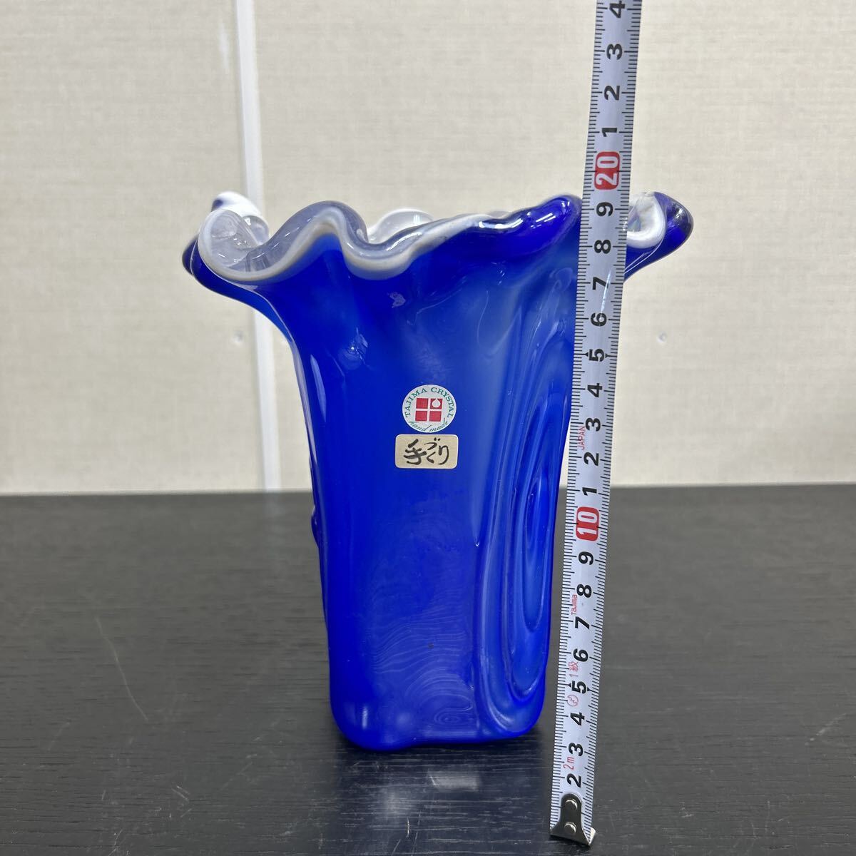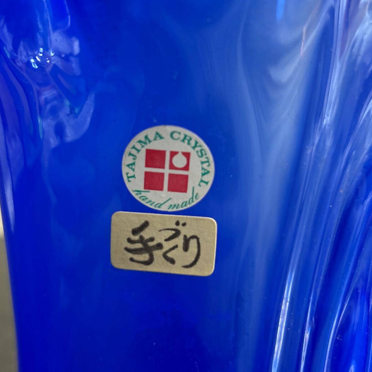 TAJIMA CRYSTAL 手づくり フラワーベース 花瓶 花器 インテリア ブルー 青 ガラス 花入 置物 クリスタルガラス