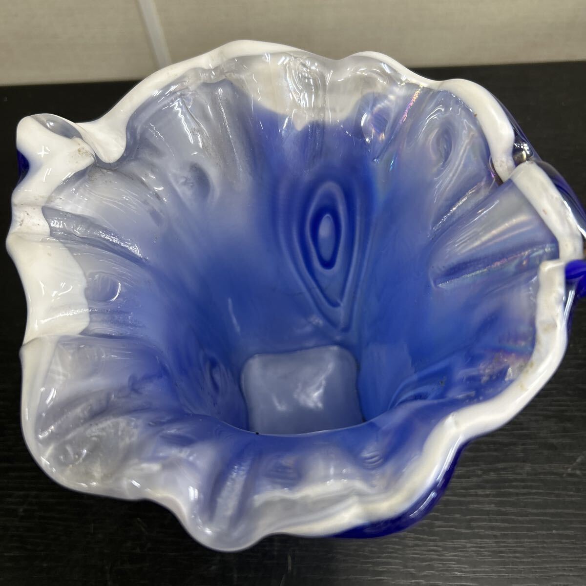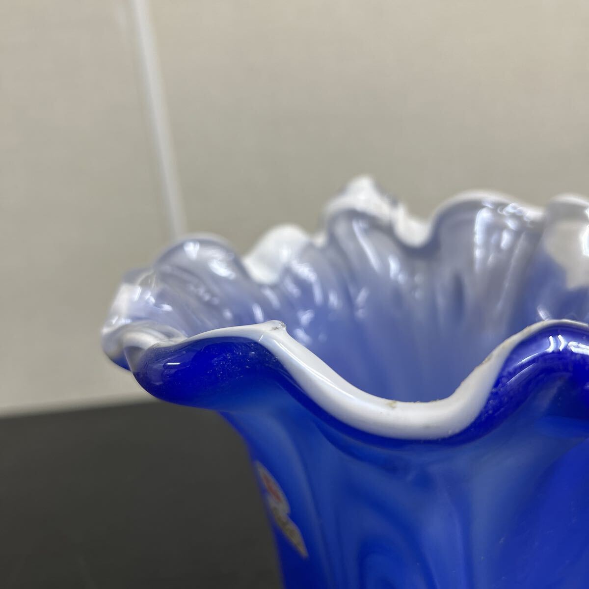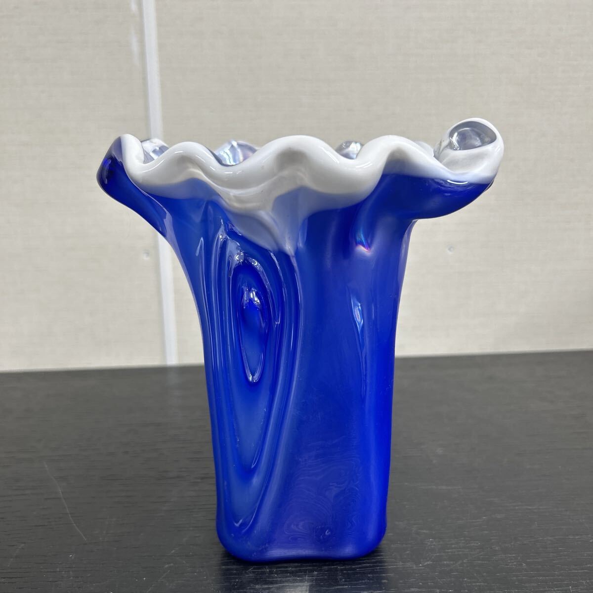TAJIMA CRYSTAL 手づくり フラワーベース 花瓶 花器 インテリア ブルー 青 ガラス 花入 置物 クリスタルガラス