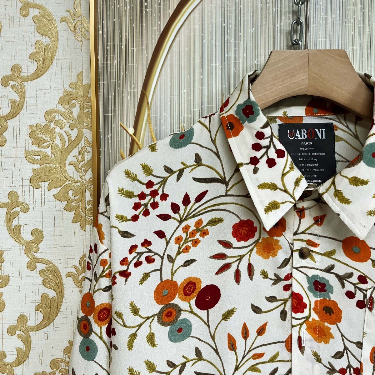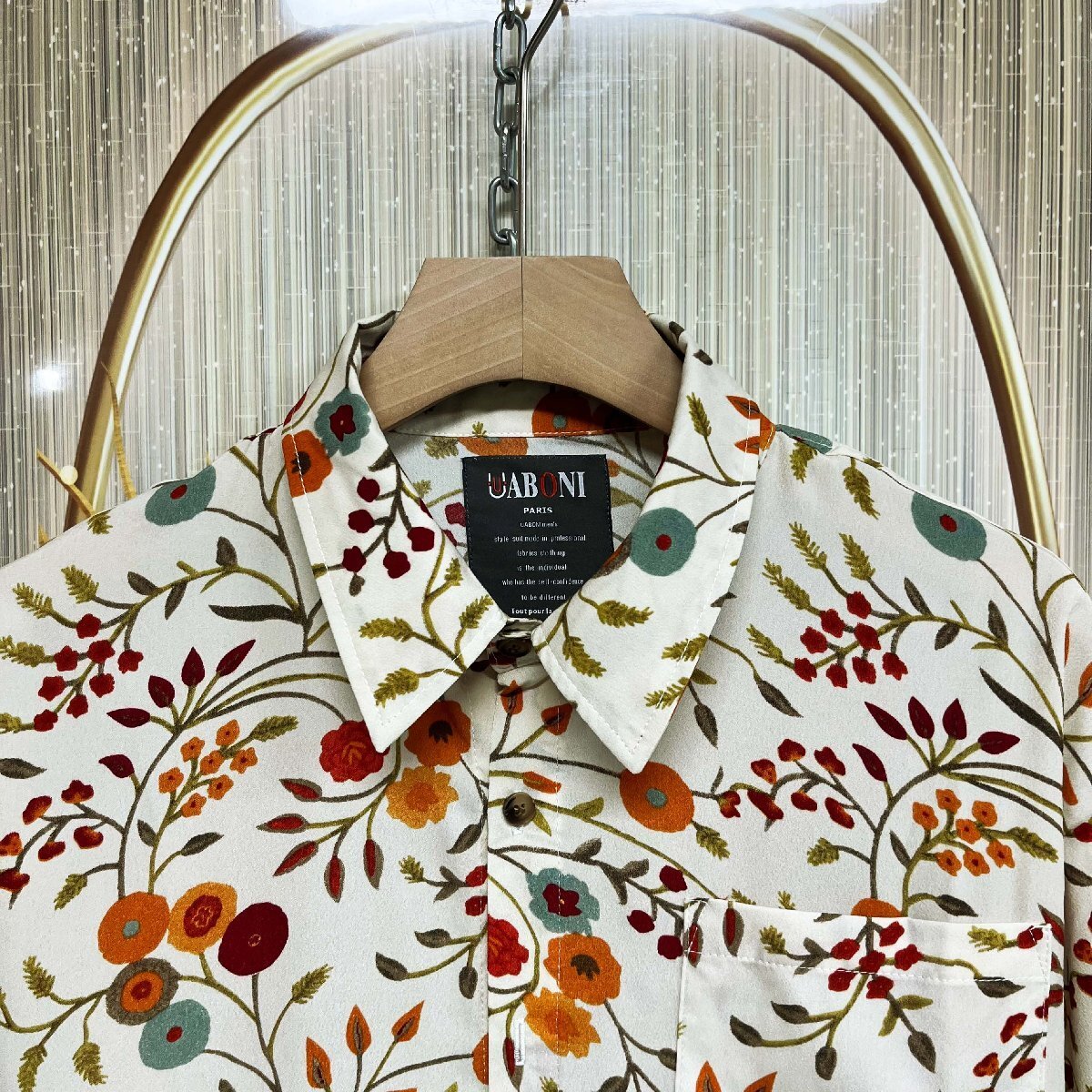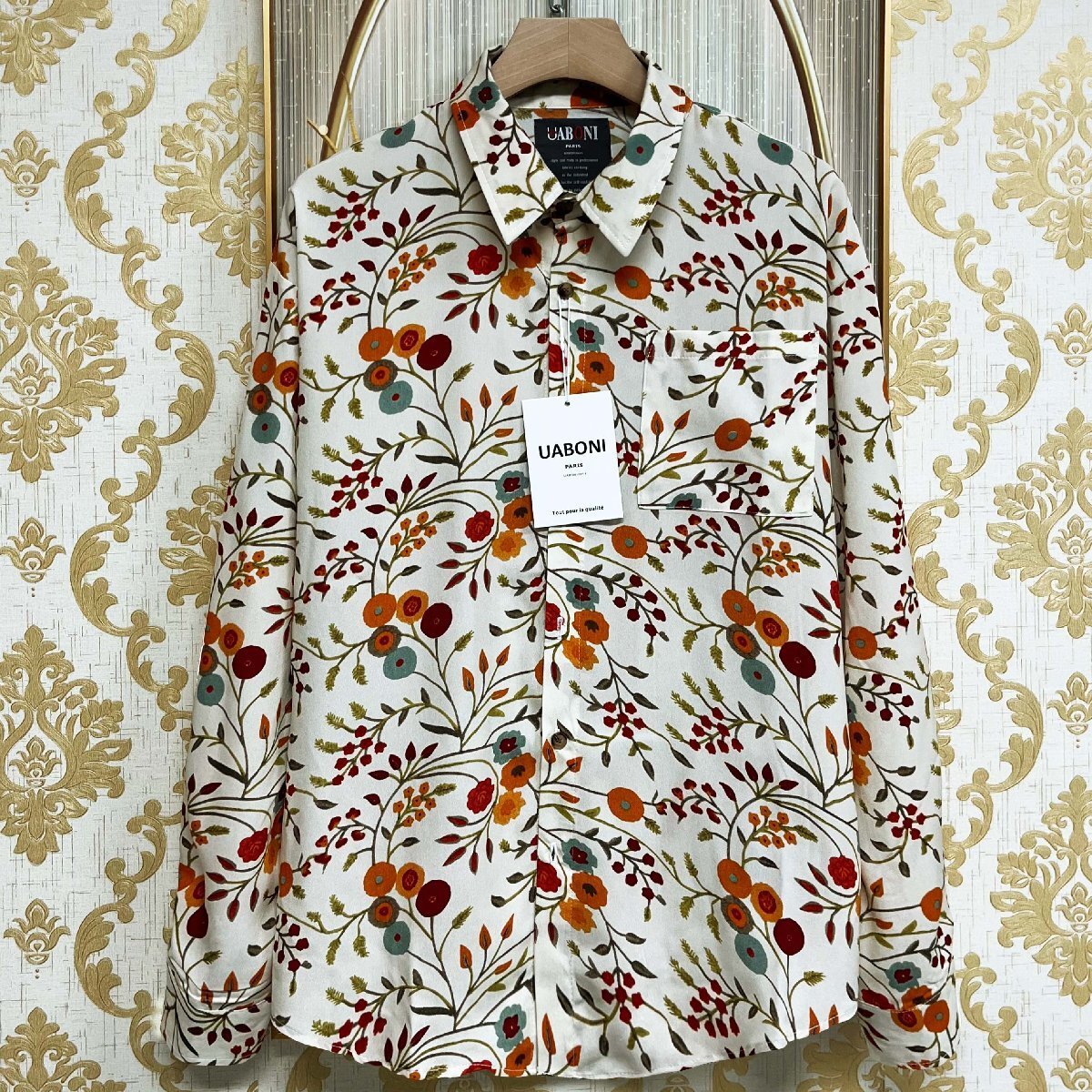 個性EU製&定価4万◆UABONI*Paris*長袖シャツ*ユアボニ*パリ発◆シルク混 薄手 柔らかい 花柄 折り襟 アロハ 開襟シャツ カジュアル リゾート 日常 秋 M/46
