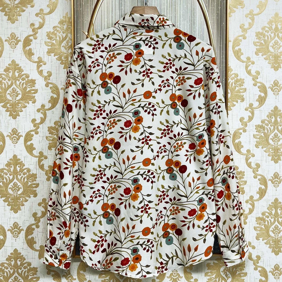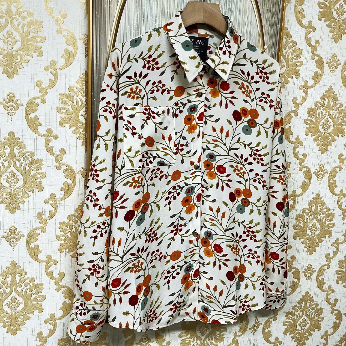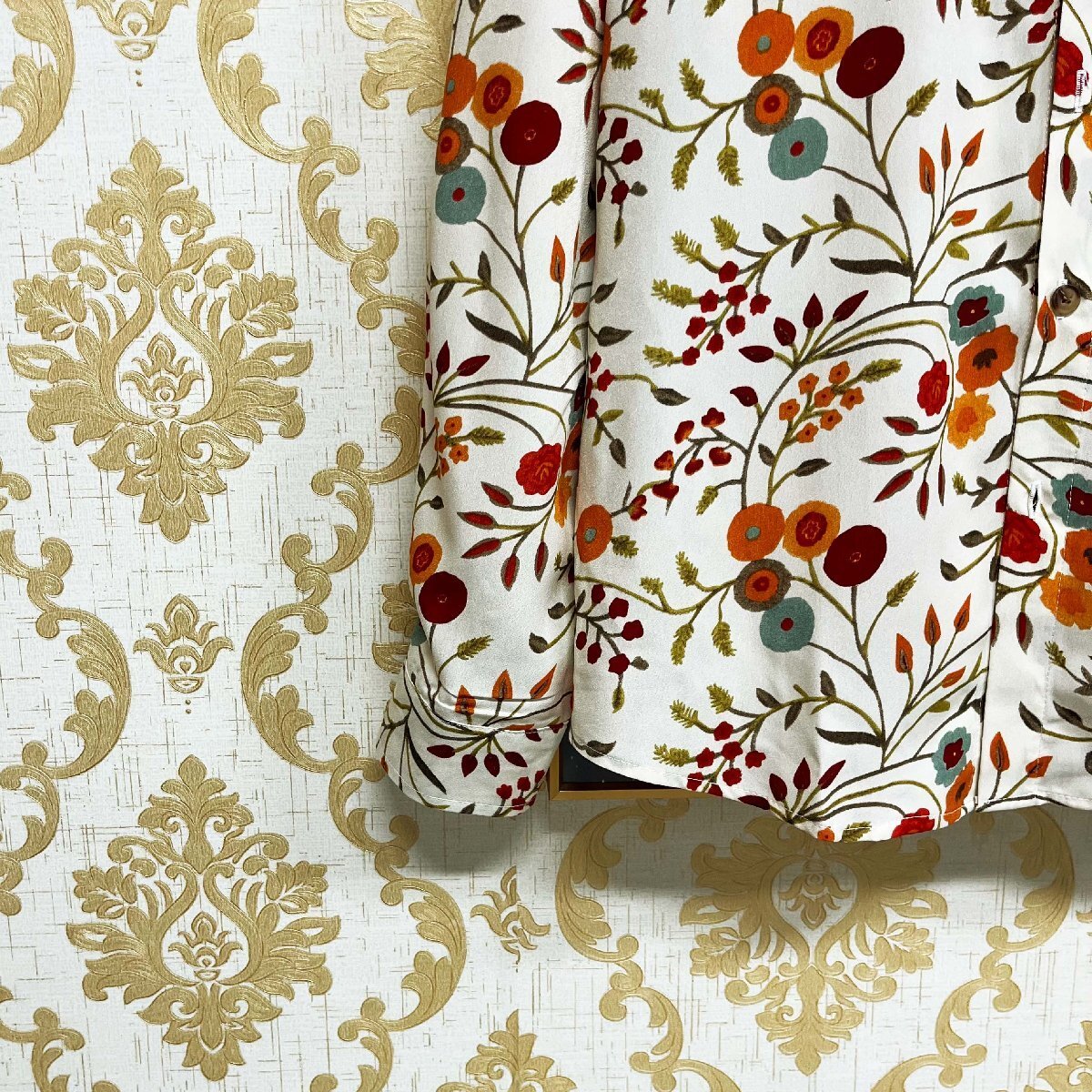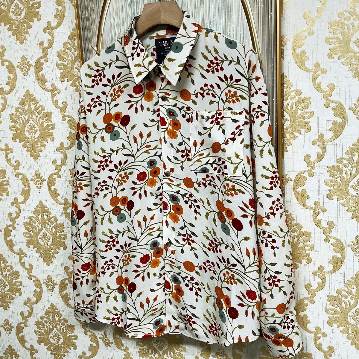 個性EU製&定価4万◆UABONI*Paris*長袖シャツ*ユアボニ*パリ発◆シルク混 薄手 柔らかい 花柄 折り襟 アロハ 開襟シャツ カジュアル リゾート 日常 秋 M/46