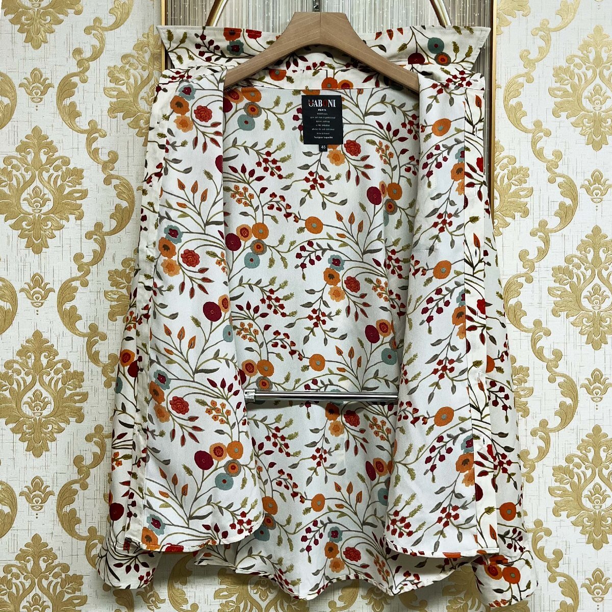 個性EU製&定価4万◆UABONI*Paris*長袖シャツ*ユアボニ*パリ発◆シルク混 花柄 折り襟 アロハ 開襟シャツ カジュアル リゾート 秋 M/46