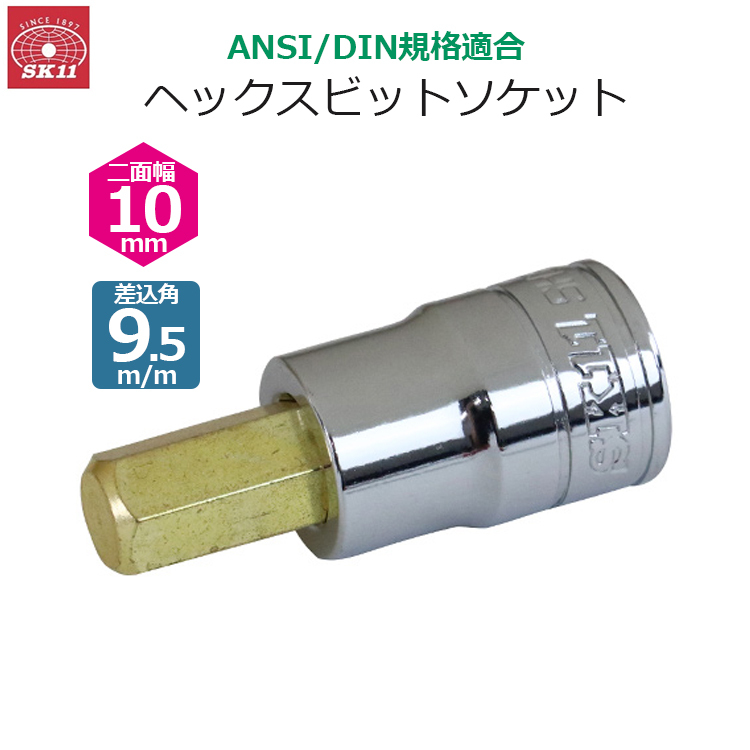 SK11 ヘックスビットソケット 差込角9.5m/m 二面幅10mm ビットソケット SH3-10