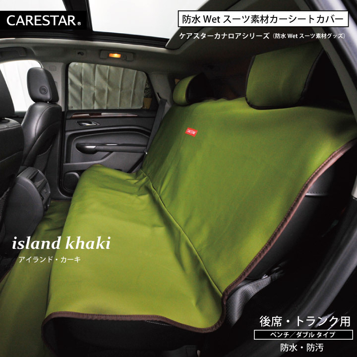 シートカバー 防水 後部座席用 トランク用 カーキ カナロア ダブル ウェットスーツ素材 かわいい ペット 汎用 洗える CARESTAR ZBKW-SRW2