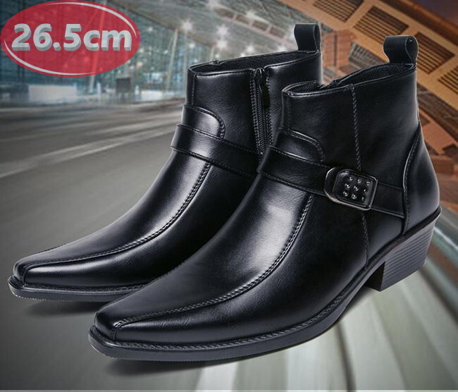 サイドジッパー メンズ ビジネス レザー シューズ ブラック 26.5㎝ 革靴 靴 カジュアル 屈曲性 通勤 軽量 インポート品【n153】
