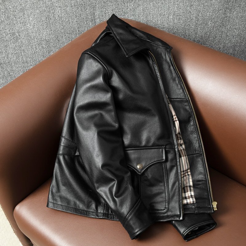 ◆状態:新品未使用素材:牛革★裏地:ポリエステル★サイズ(サイズ選択可能。落札後、ご希望サイズをお知らせ下さい。)★サイズ表:S着丈62cm 肩幅43cm 胸囲100cm 袖丈59cmM着丈63cm 肩幅44cm 胸囲104cm 袖丈60cmL着丈64cm 肩幅45cm 胸囲108cm 袖丈61cmXL着丈65cm 肩幅46cm
