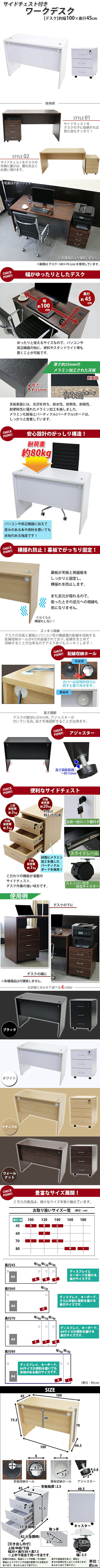 | 商品サイズ | ■本体寸法・・・デスク:約W100×D45×H73.5(cm) サイドチェスト:W約40×D約48.5×H約55.5(cm) ■梱包寸法(2個口)・・・デスク:約W110×D54×H12(cm) サイドチェスト:W約47×D約56×H約52(cm) |