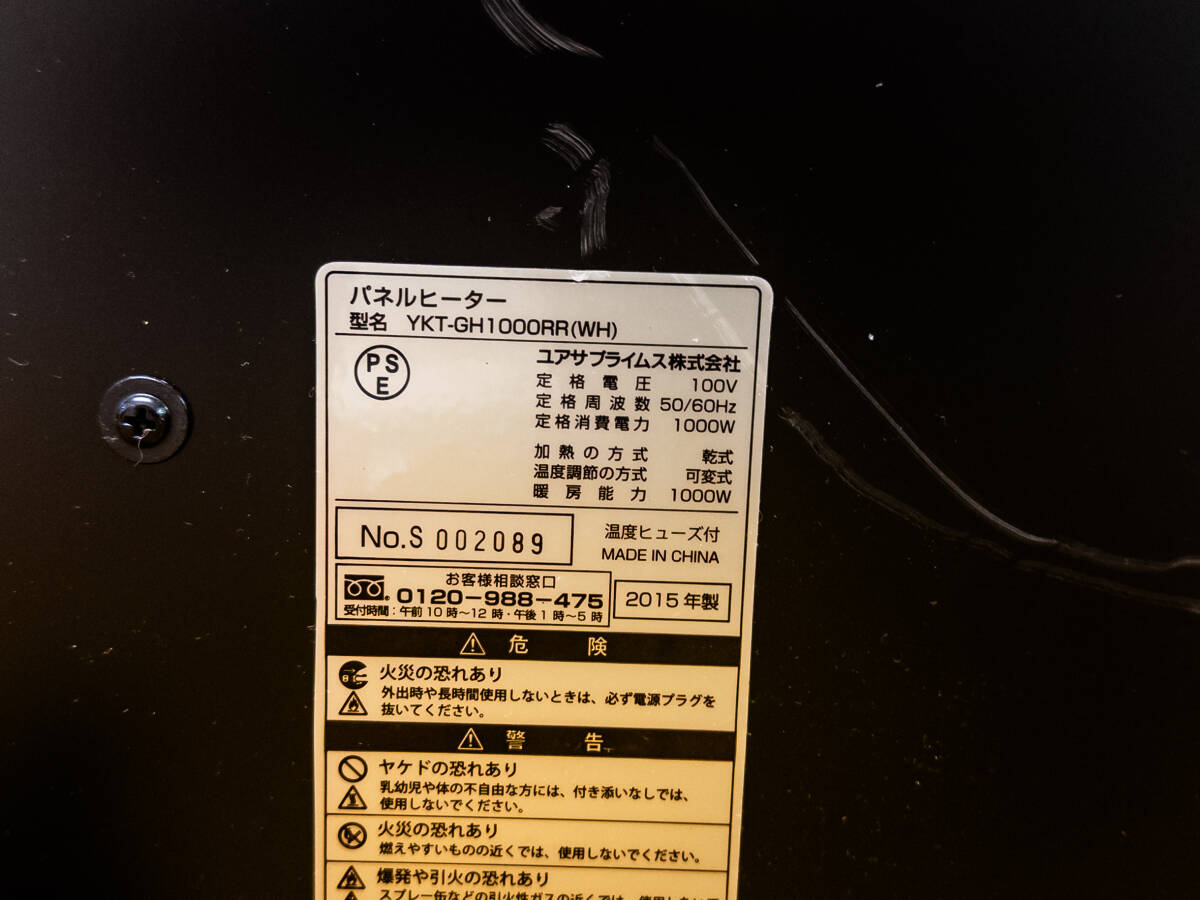 ○品名:ユアサプライムス パネルヒーター YKT-GH1000RR(WH)