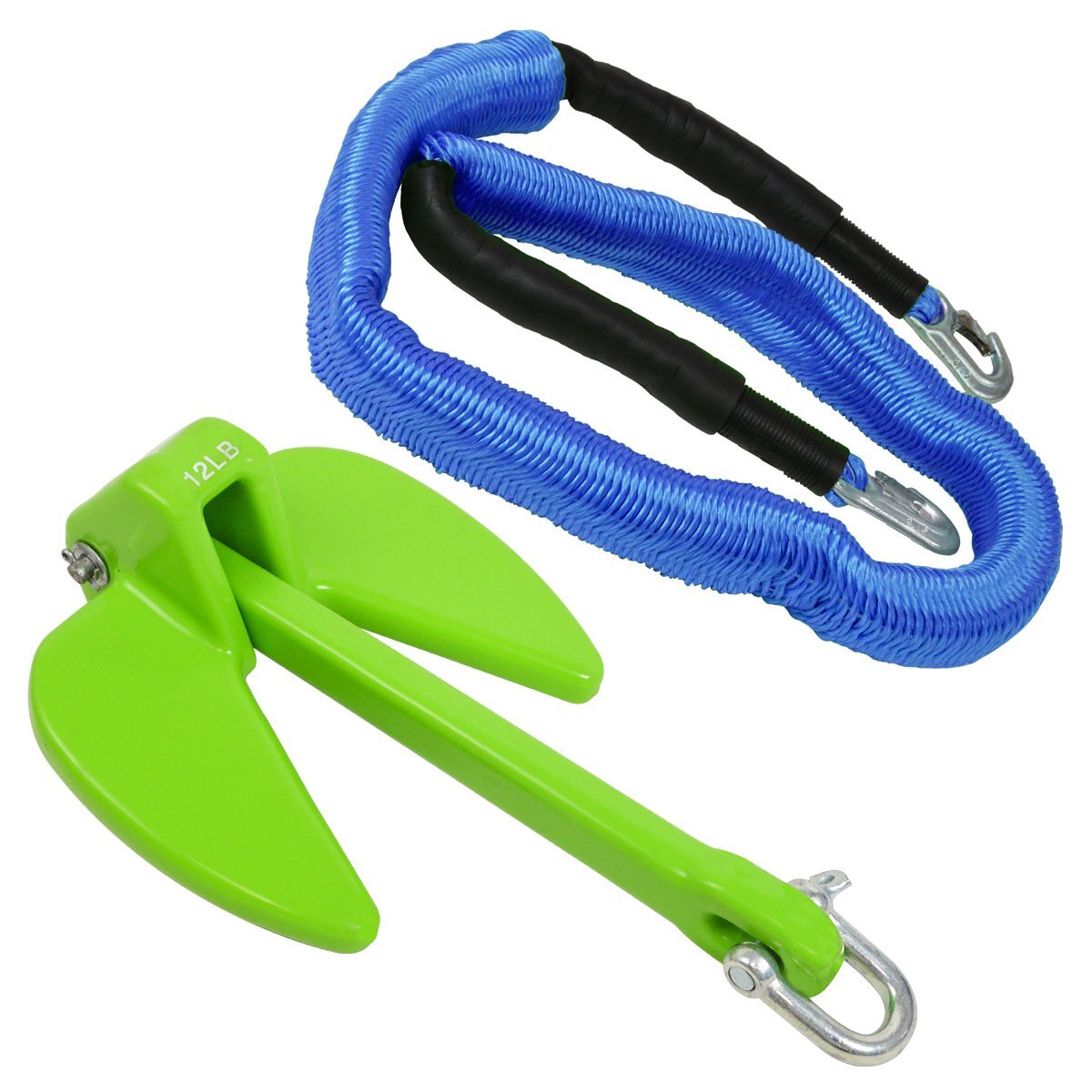 【送料無料】『伸縮ロープ/アンカーセット』ジェットスキー 爪型 アンカー 12LBS 5.5kg 緑 6M フロート のびのび アンカー ロープ 青