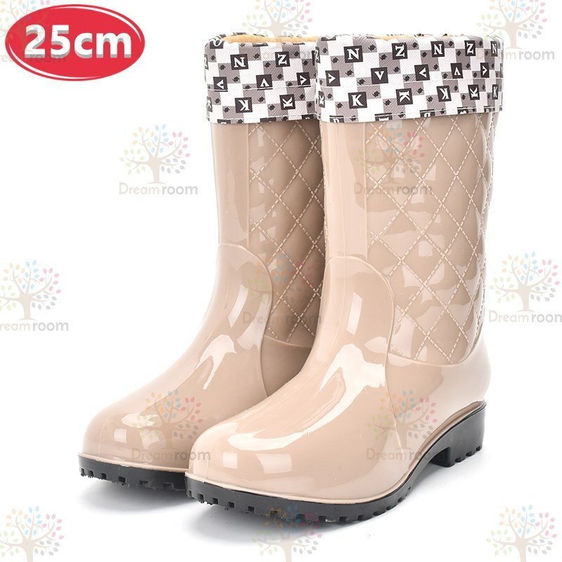 お洒落 キルティング レインブーツ インナー付 【ベージュ 25cm】 長靴 レディース 女の子 梅雨 K-311