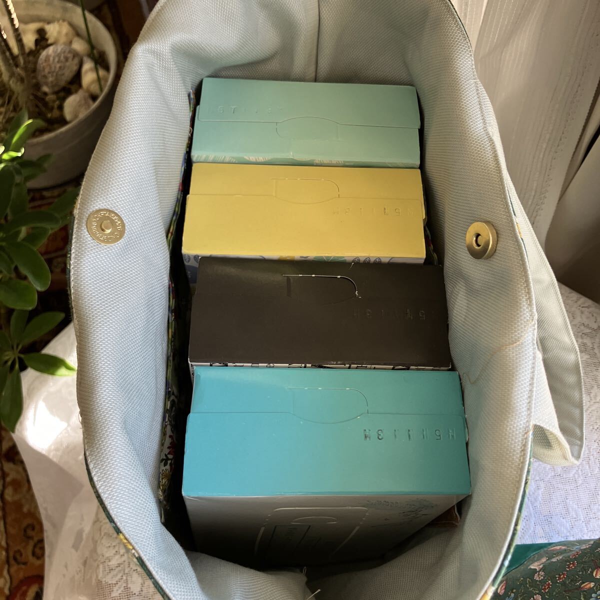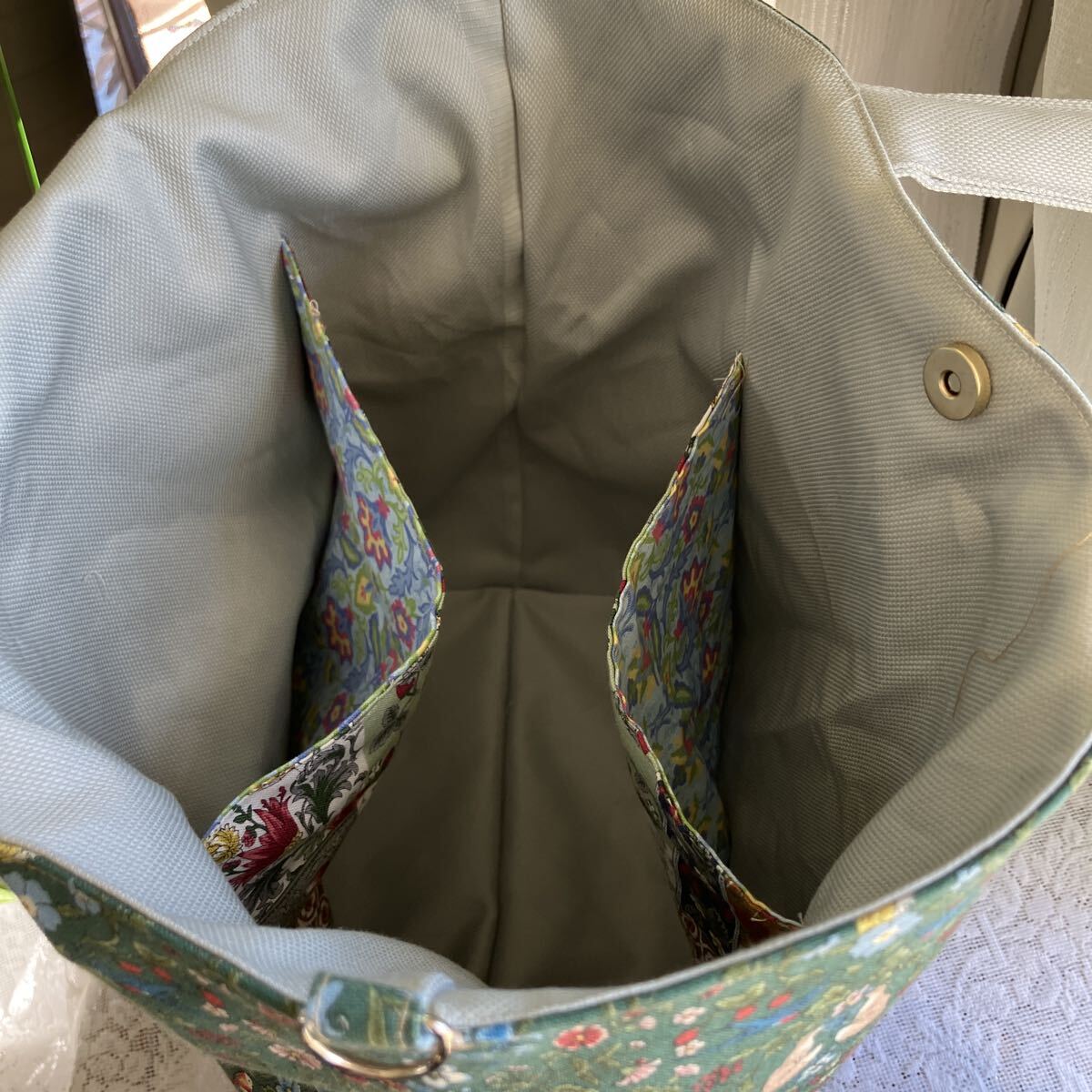植物と小さな動物柄のコットンで使いやすい大きめトートと手提げのセットを作りました。