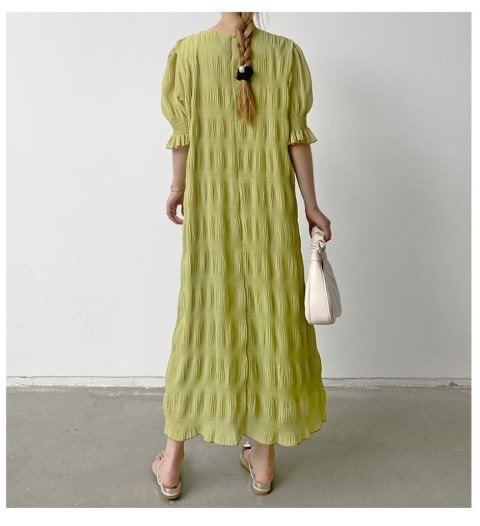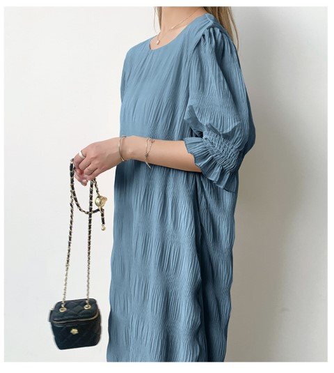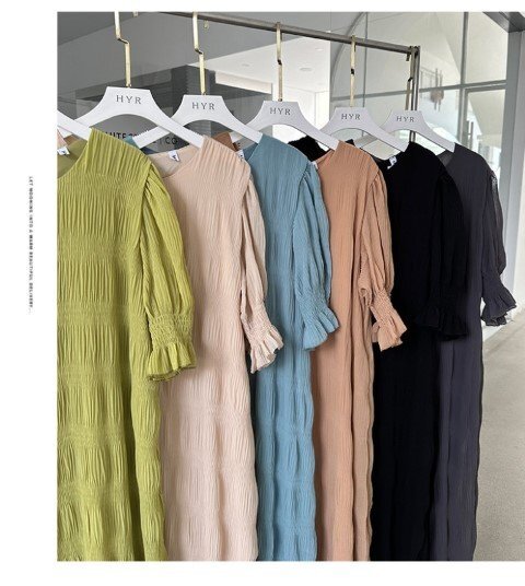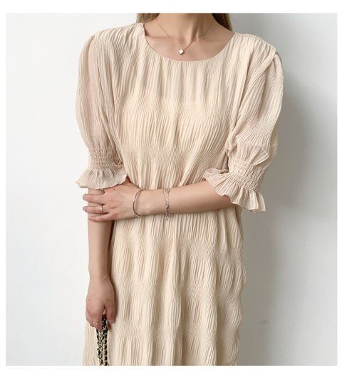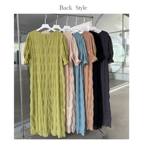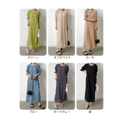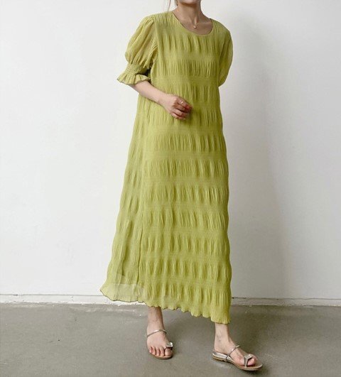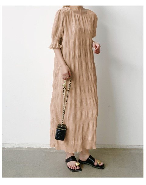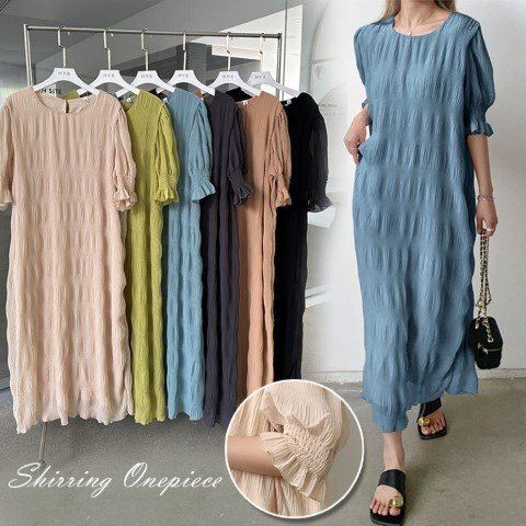 ・エアリーなシフォン素材のやわらかシャーリングワンピース。動くたび軽やかに揺れて優しい印象に仕上げてくれます。