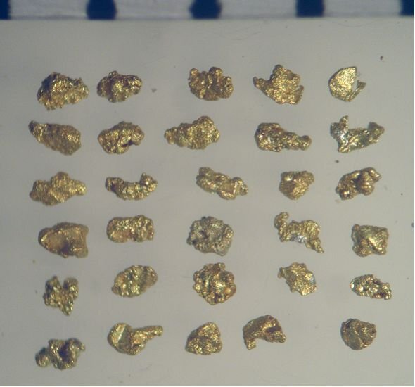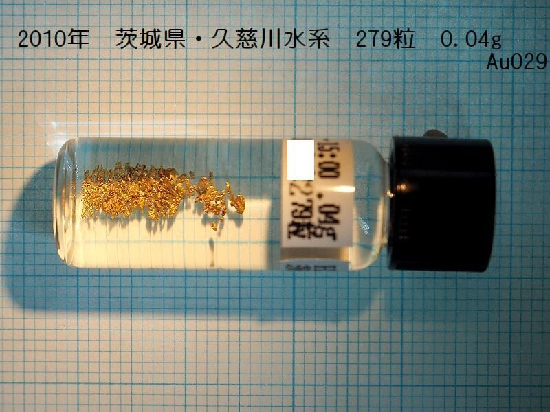 | 茨城県久慈川水系の自然金(砂金) 送料無料期間を終了させていただき、送料有料となります。 ご理解のほどよろしくお願いいたします。 茨城県久慈川水系の支流で採取された自然金(砂金)です。 依頼者からのそのまま「スクリュー瓶」に入れてのお届けです。 産地、採集日などは、記入されたラベルが瓶に貼付されています。 産地等は、乱獲防止のため、秘密厳守でお願いします。 すり替え防止のため、返品不可でお願いいたします。 瓶のラベルに記載されていますが、6時間かけて採取された自然金(砂金)です。 瓶のラベルには、279粒とあります。 画像の目盛は、1目盛が1mmです。水中での写真です。 最大径は2.2mmで、最小径0.06mmほどの粉金も含まれます。 大きさは、写真からの目測です。およその値と思ってください。 純水を入れたガラス製の「スクリュー瓶」に入れて保管されていました。 発送では、純水は抜いておきます。 粉金などは、水の表面張力で浮いてしまいます。 水を入れる際は、流れ出る可能性があります。保管にはご注意ください。 自然金(砂金)の乾燥重量は、0.04gです。 重さは、デジタルスケールで測定した値です。およその値と思ってください。 産地周辺には、戦国時代から江戸時代初期にかけ佐竹藩の隠れ金山が あったと言われています。中には、昭和初期から平成11年まで採掘され ていたところもあります。 ここの砂金は、金以外に13~14%の銀を含む、21Kの純度です。 久慈川流域の砂金は、エレクトラムと言って、金と銀の混合物になっています。 画像の中で、銀色の部分が銀です。 純金換算量を計算すると、約0.035gになります。 ここの砂金は、細かい粉金が多いです。時に、白い石英の結晶を含む 石食みのものもあります。 近くの含金鉱石から分離した物なので、丸くなく、結晶形を残した、 不規則な形が多いです。 金価格が高騰している現在、金は価値があります。 また、自然金(砂金)は、採取が困難で、産地が明らかなものは貴重です。 茨城県産の自然金(砂金)をコレクションに加えていただければ幸いです。 画像でよく確認してください。 出品に際してチェックをしておりますが、 見落としなどあるかもしれません。 ご理解いただいた上、十分にご検討いただき、 ノークレーム、ノーリターンでお願いします。 ご不明な点は必ず入札いただく前に「出品者への質問」よりお願いいたします。 専門的なご指摘・質問には対応ができません。 産地等の質問には、お答えできません。落札者のみ詳しい産地がわかります。 できる限りの範囲で疑問にお答えいたします。 |