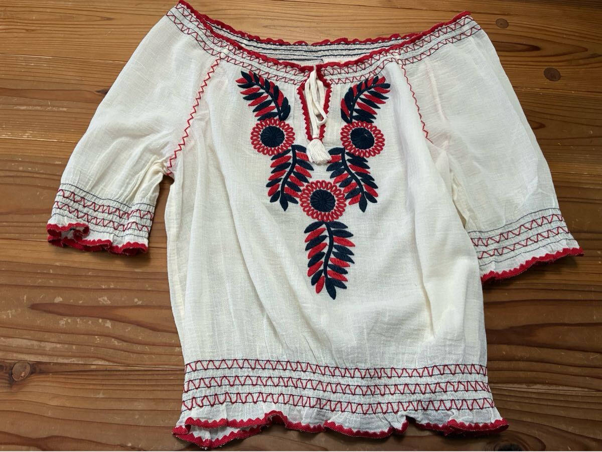 可愛い繊細な刺繍の入った高級感のあるブラウスです。