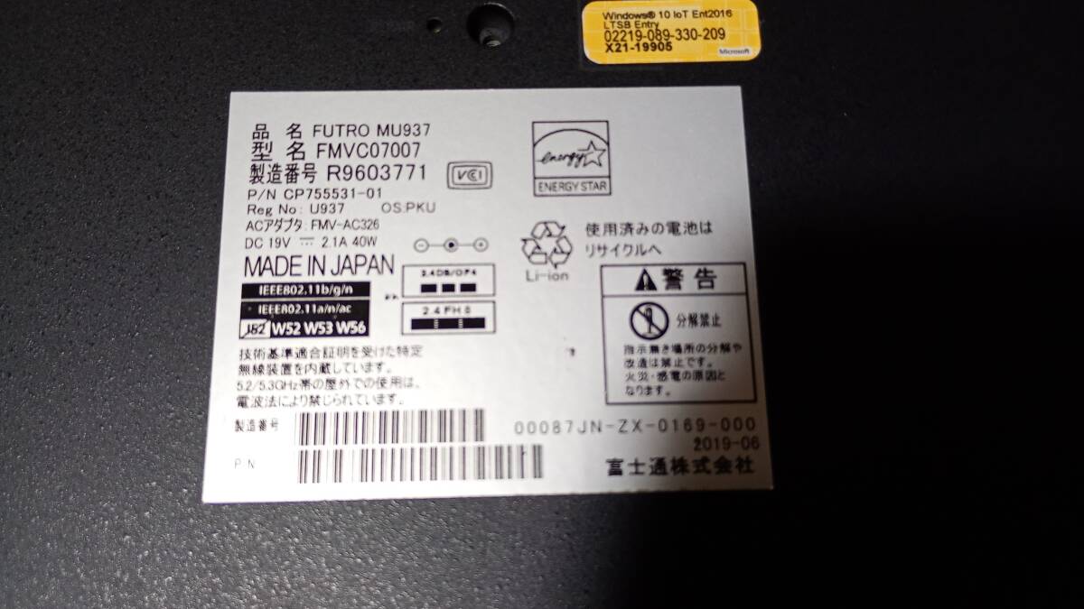 管50610-17-46 富士通 FMVC07007 MU937 液晶無し バッテリー無し SSDなし 電源ランプまで確認 多分OSライセンス不可 ジャンク
