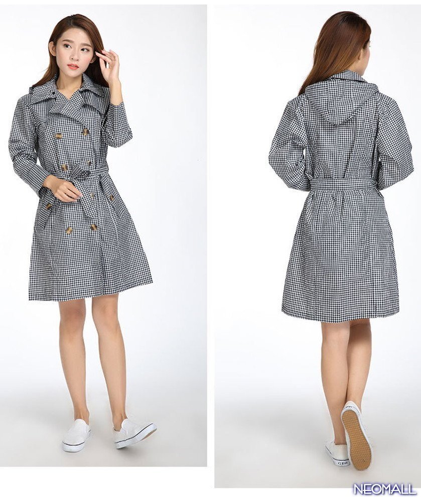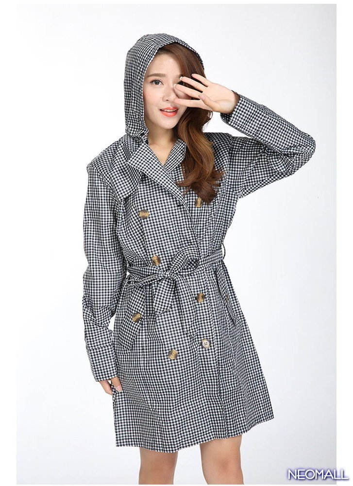 雨対策に☆【523】レディース レインコート 白黒格子 フリーサイズ 梅雨対策 防水 撥水 雨具 雨 雪 ゲリラ豪雨 通勤 通学