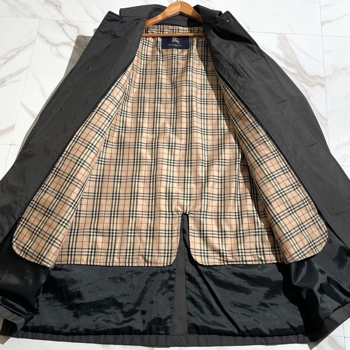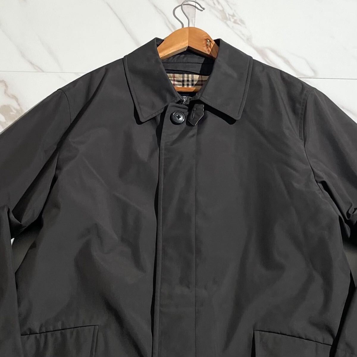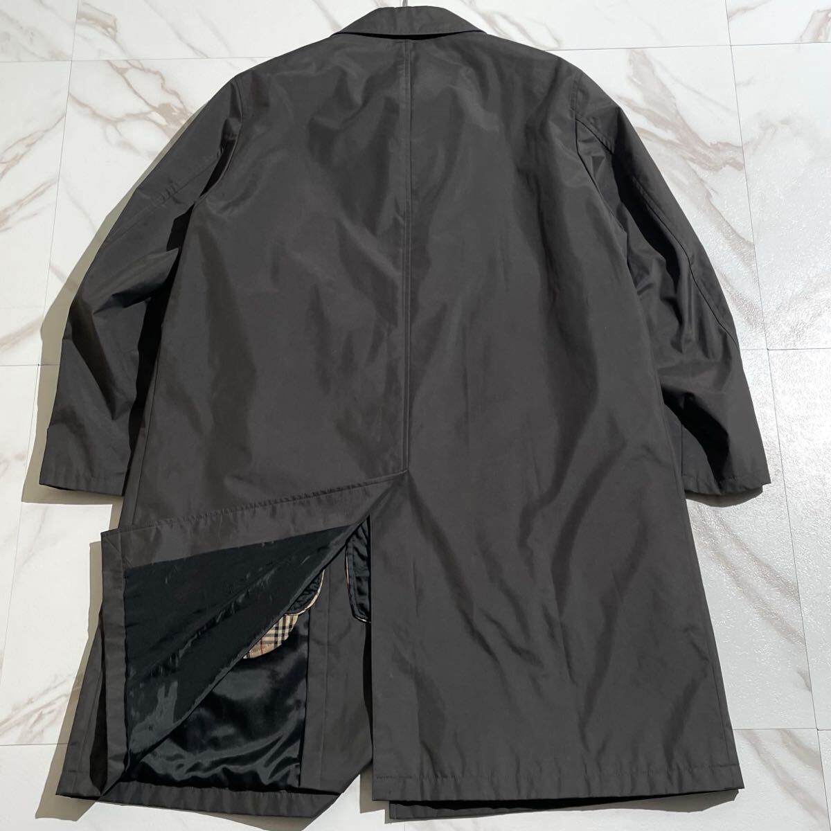 【美品/XLsize相当】BURBERRY LONDON バーバリー ステンカラーコート ナイロン ノバチェック ブラック 黒 ライナー メンズ 秋冬