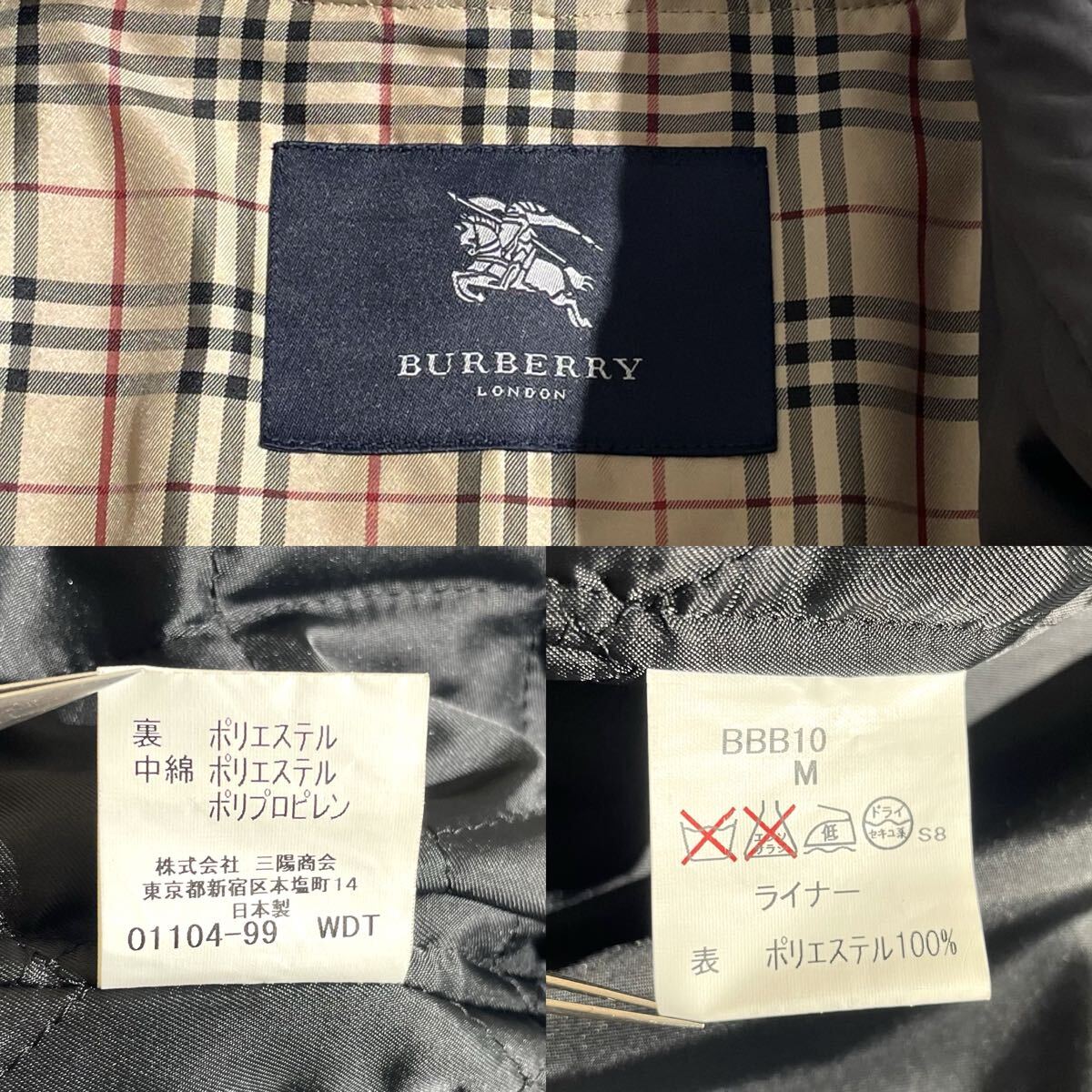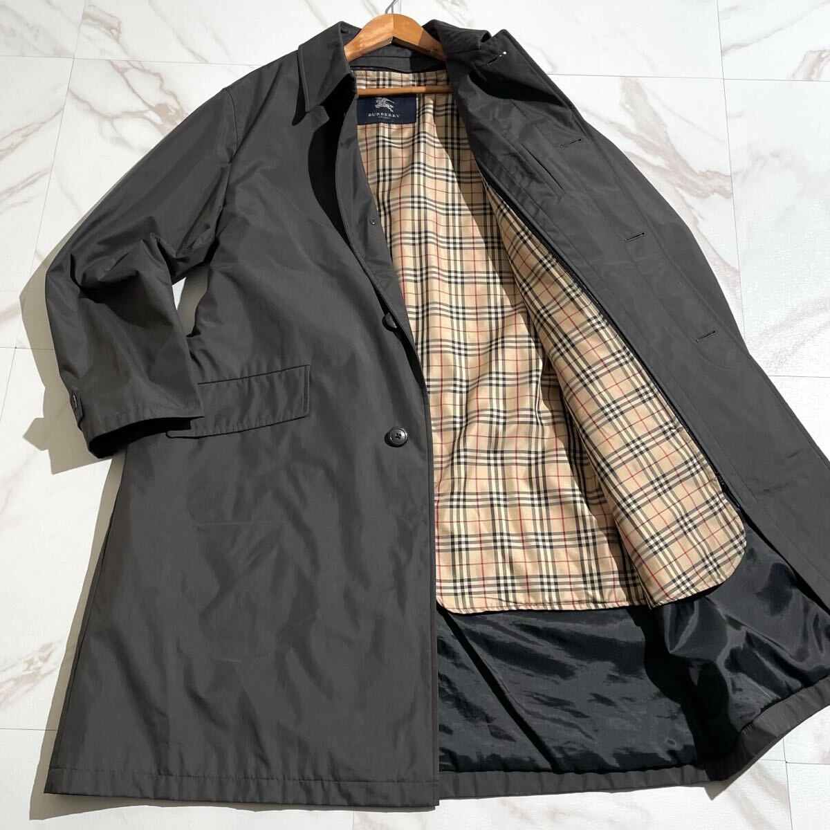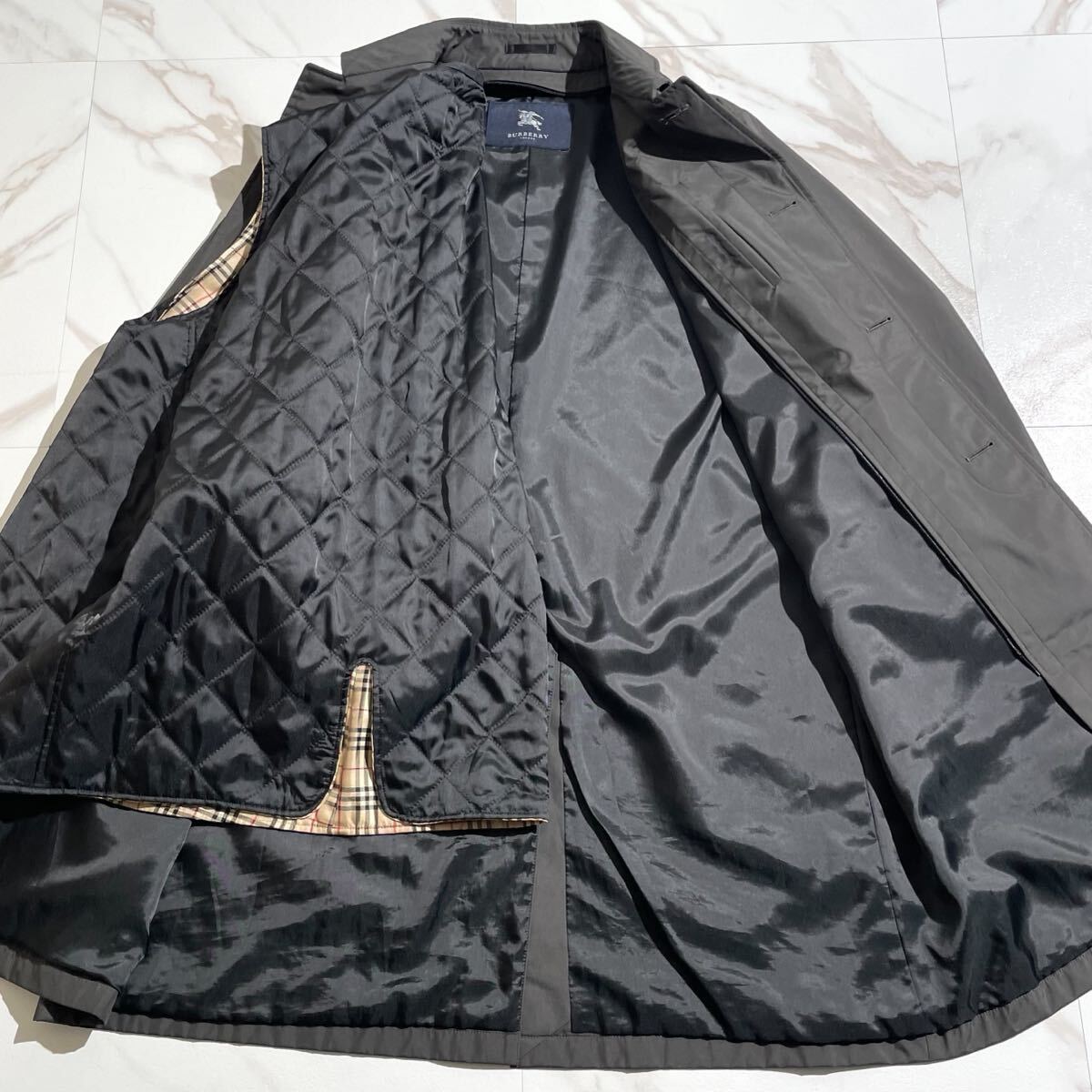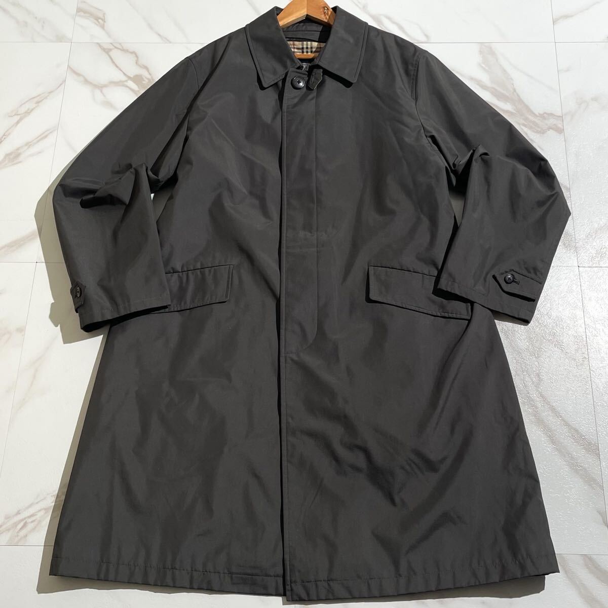 【美品/XLsize相当】BURBERRY LONDON バーバリー ステンカラーコート ナイロン ノバチェック ブラック 黒 ライナー メンズ 秋冬