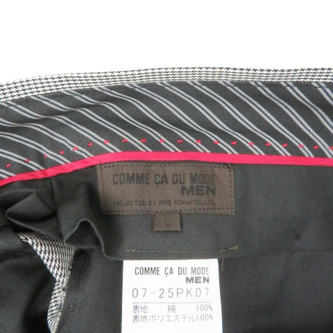 コムサデモードメン COMME CA DU MODE MEN スラックパンツ ストレート ロング丈 千鳥格子柄 L 黒 ブラック オフホワイト メンズ