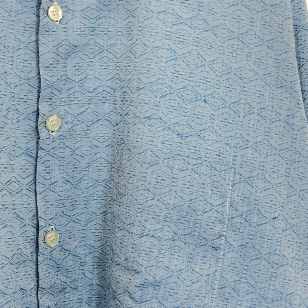 | 【商品管理番号】 U9915 【サイズ】 XL相当 【実寸サイズ】 肩幅:約48cm 着丈:約78cm 身幅:約67cm 袖丈:約62cm 【主な素材】 表地 : ポリエステル 【色】 ライトブルー 【仕様】 70年代 総柄 【状態】 汚れ:脇 特記事項:糸ほつれ | |||