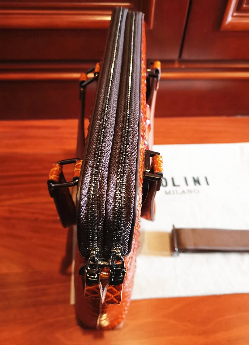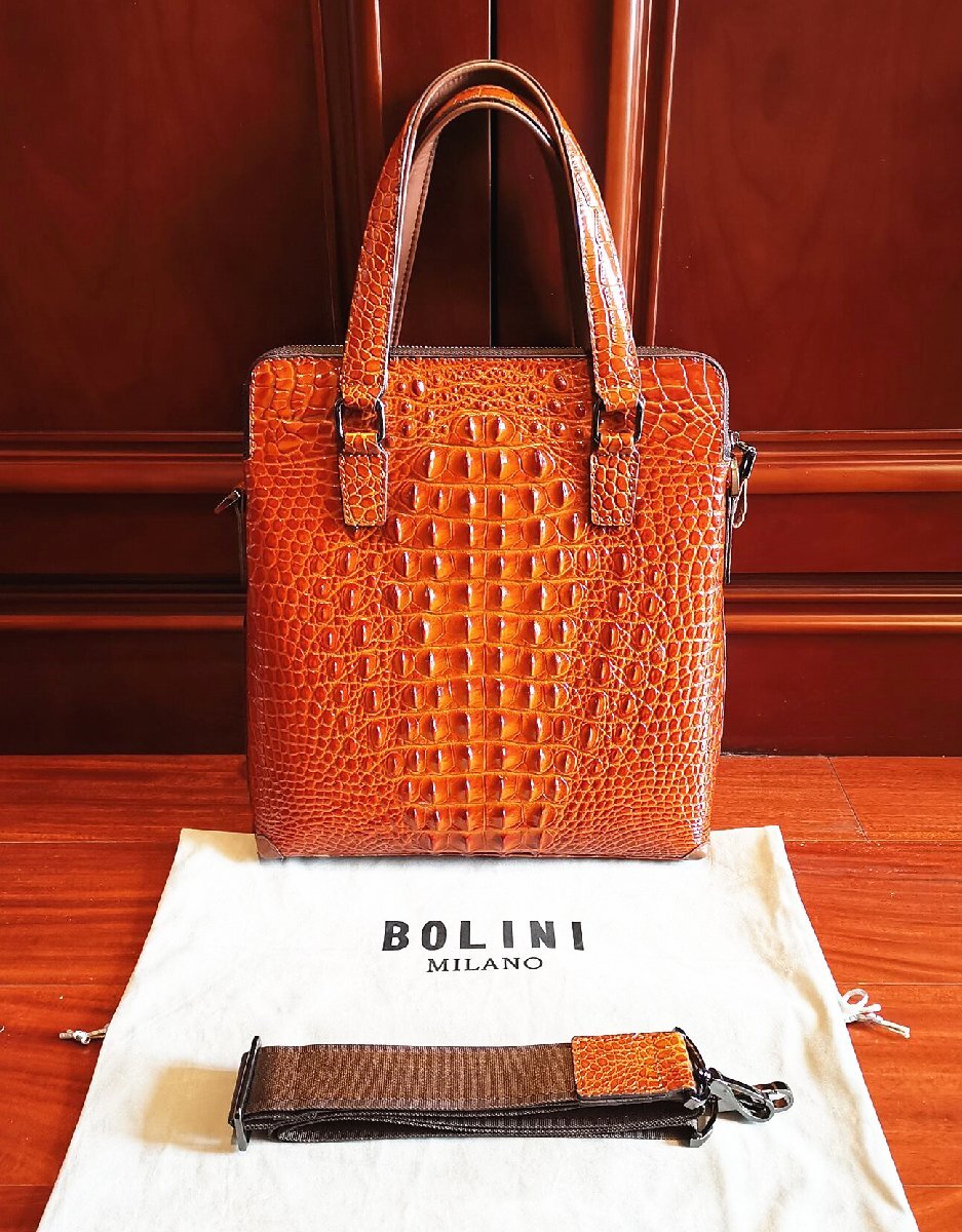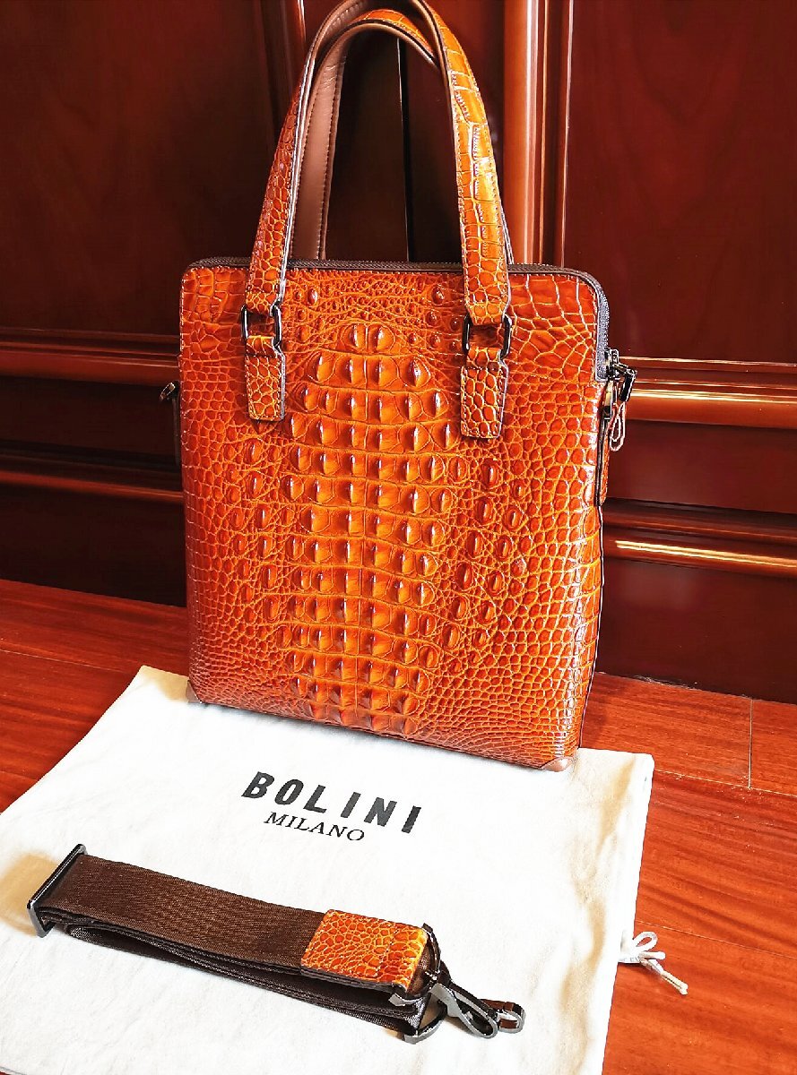 最高峰イタリアミラノ発・ボリニのビジネストートバッグ。 これは本当に素晴らしい傑作です。本体には最上級牛革を使用し上品なクロコダイル型押し仕上げしております。革ライクな表情を持ちながら、長く愛用できる一品。多くのファンから支持されている傑作です。