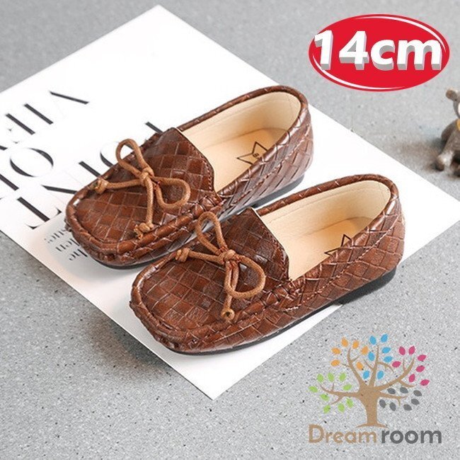 kids イントレチャート リボンローファー シューズ 【ブラウン 14cm】靴 フォーマル 編み込み 合皮 入学式 レザー