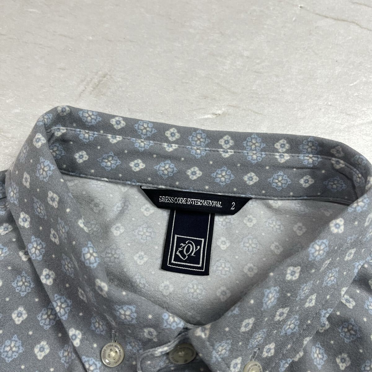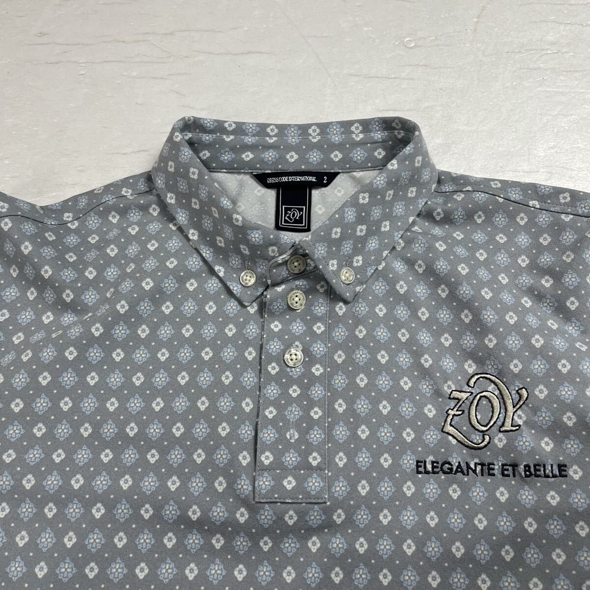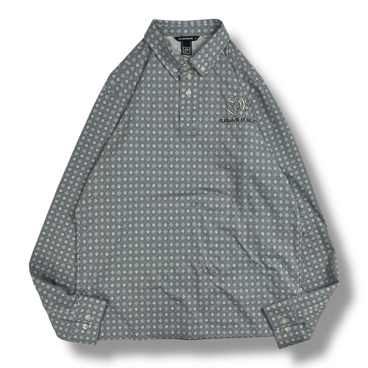 (TK1116)【美品】 ZOY ゾーイ 長袖 ポロシャツ 総柄 ライトグレー DRESSCODE INTERNATIONAL ワンポイントロゴ 定番 ゴルフウェア 2