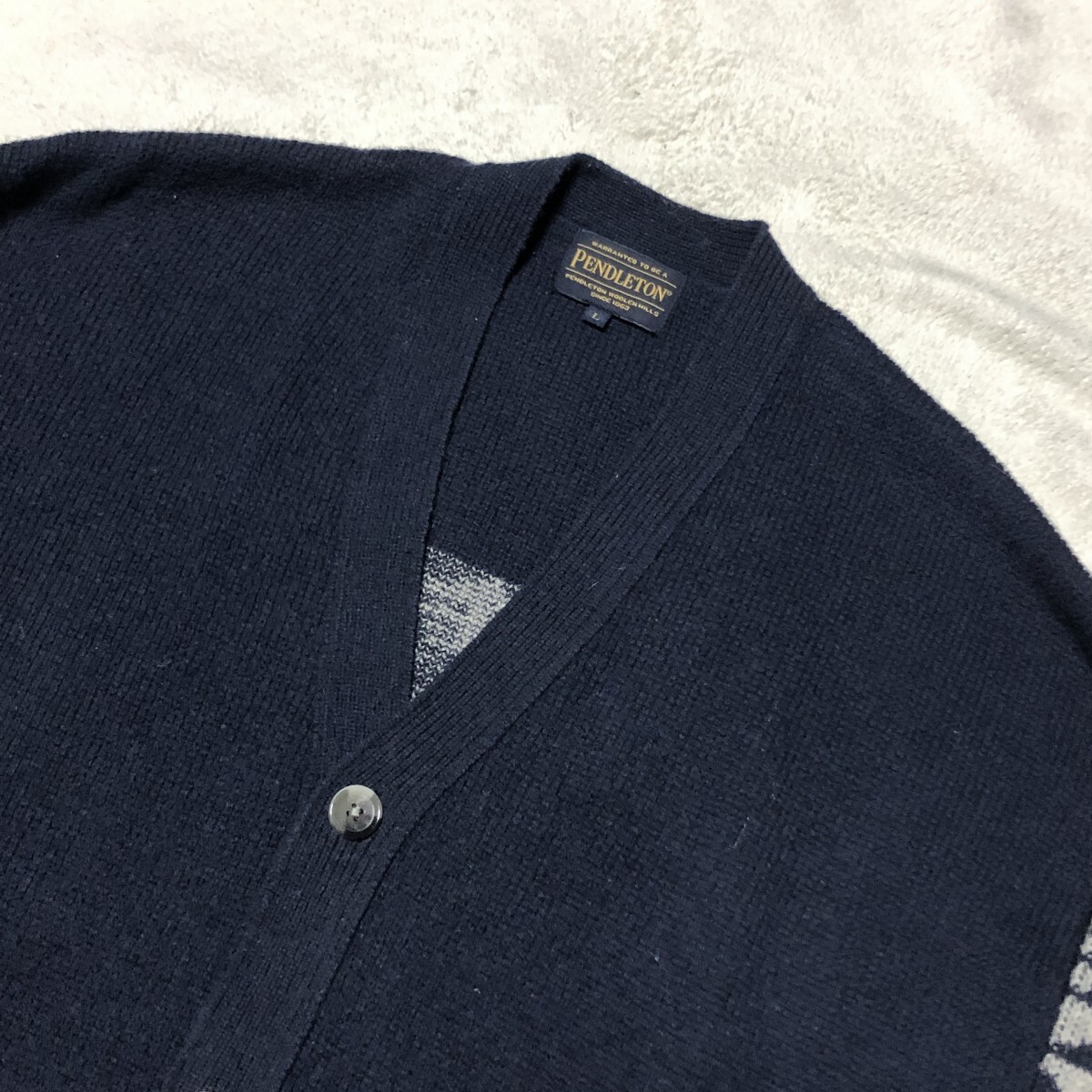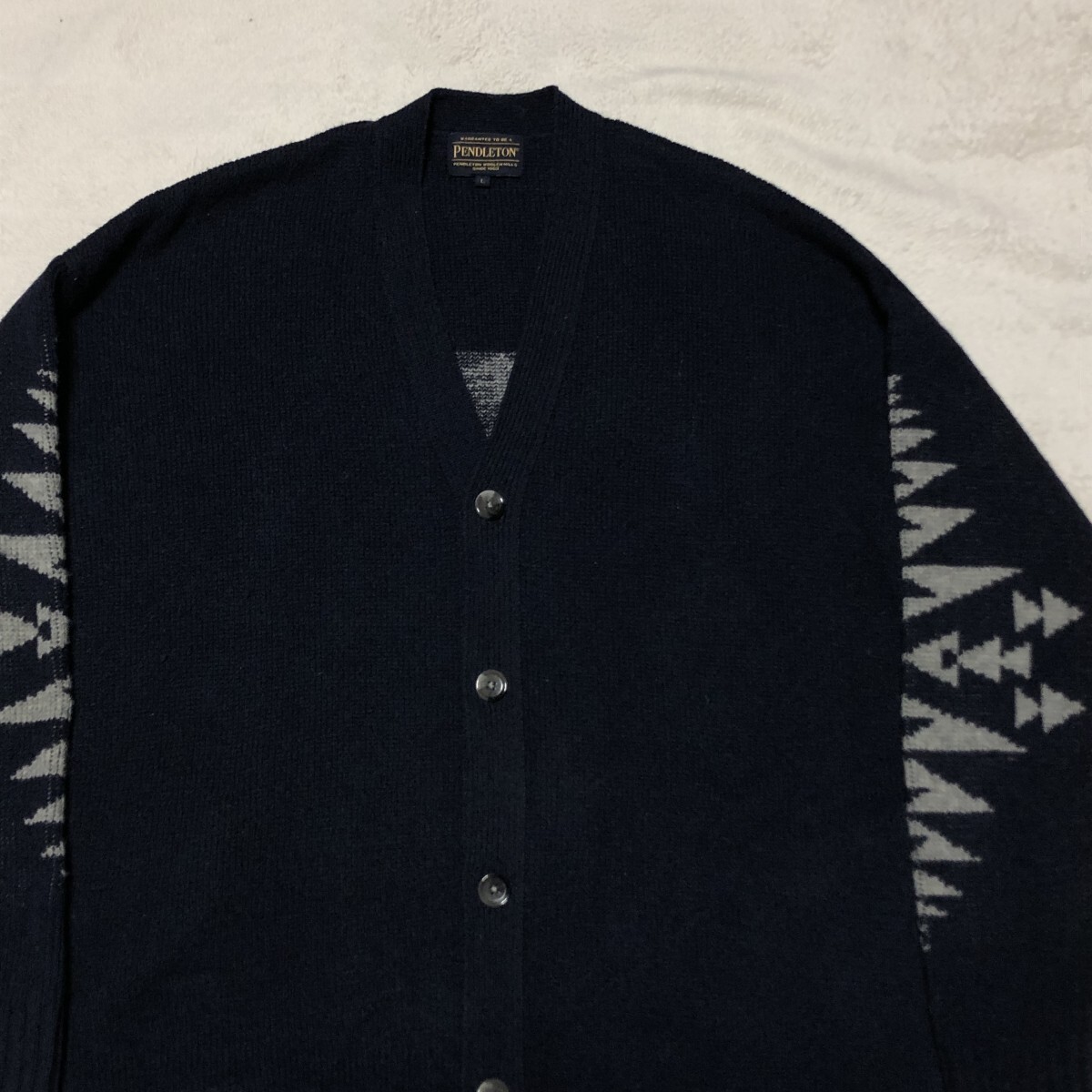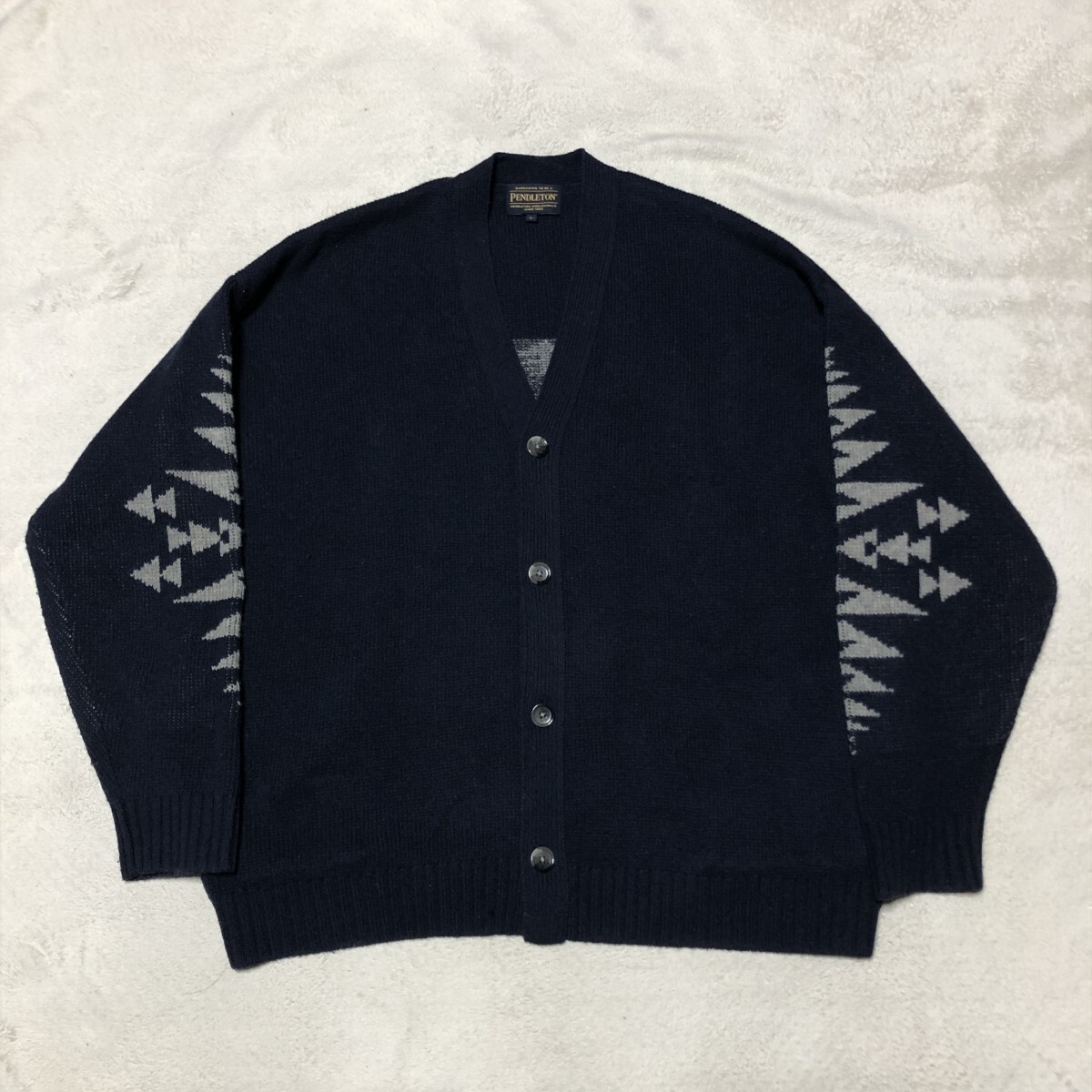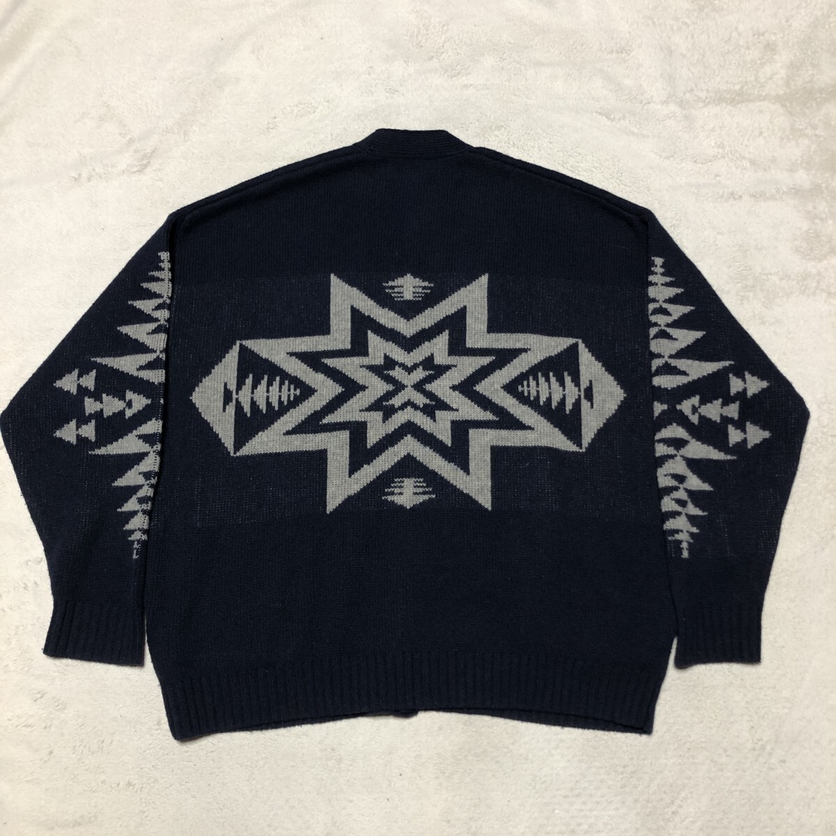 PENDLETON ペンドルトンニット カーディガン セーター ネイティブ柄 オルテガ柄 チマヨ柄 ネイビー 人気の大きいサイズ Lサイズ