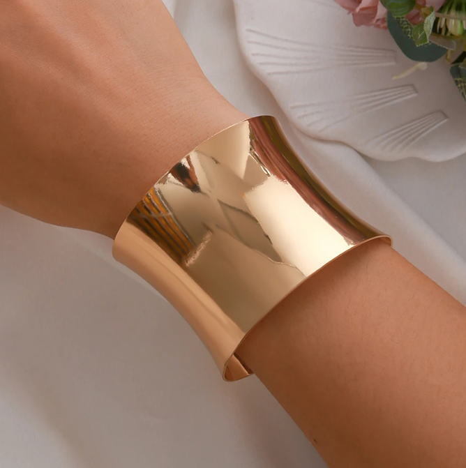 k18色ゴールド太バングル★ワイドライン ボヘミアン アジアンカフ一点投入で気品