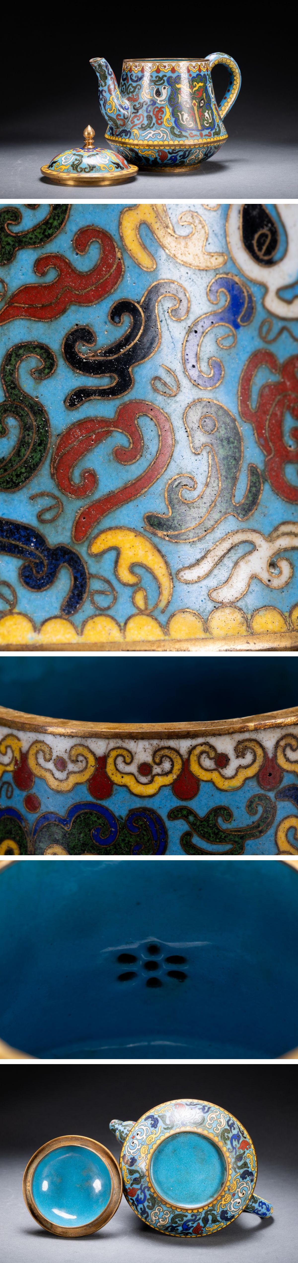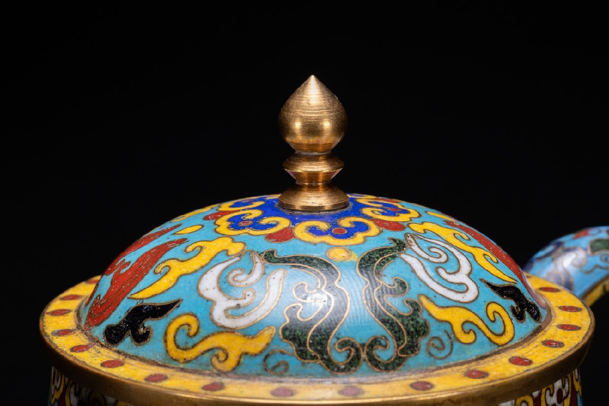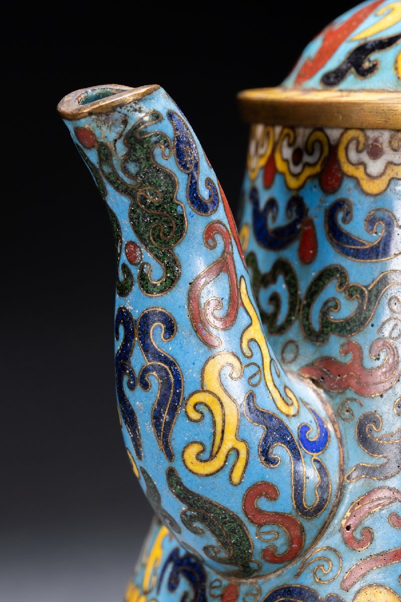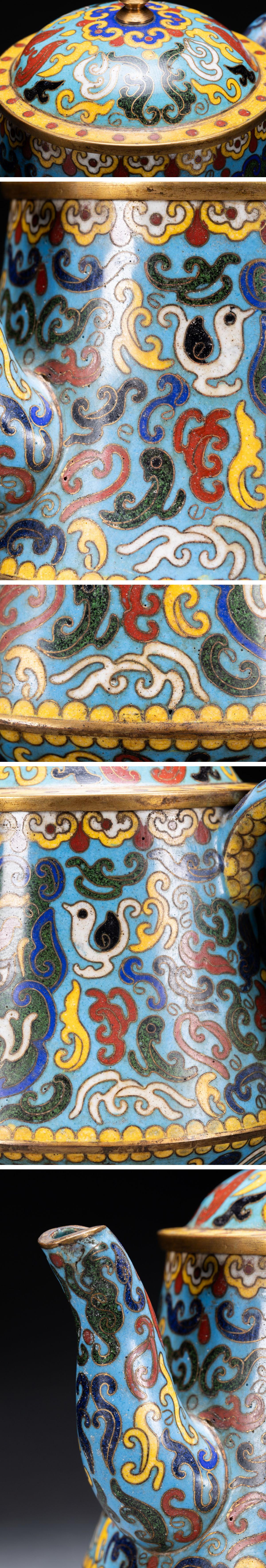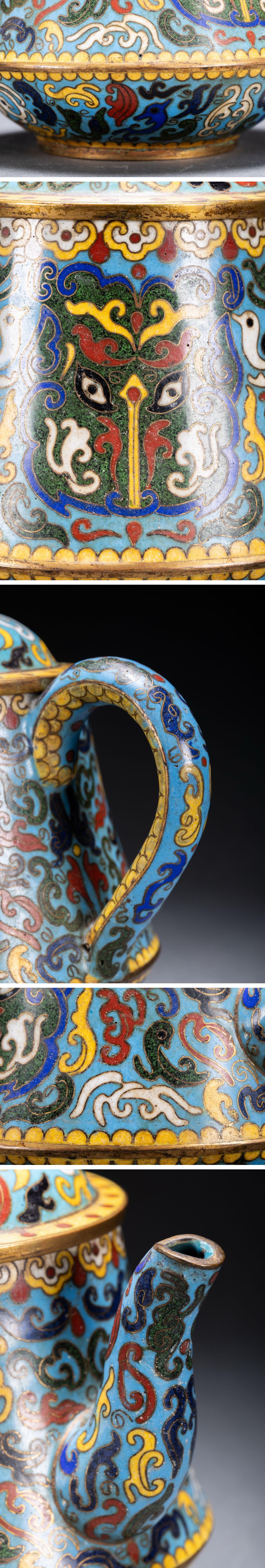 【雲錦】某有名オークション購入 時代物 中国伝来 景泰藍 饕餮面持壺 共箱 古置物 古擺件 古美術 時代コレクションWK10-28S2