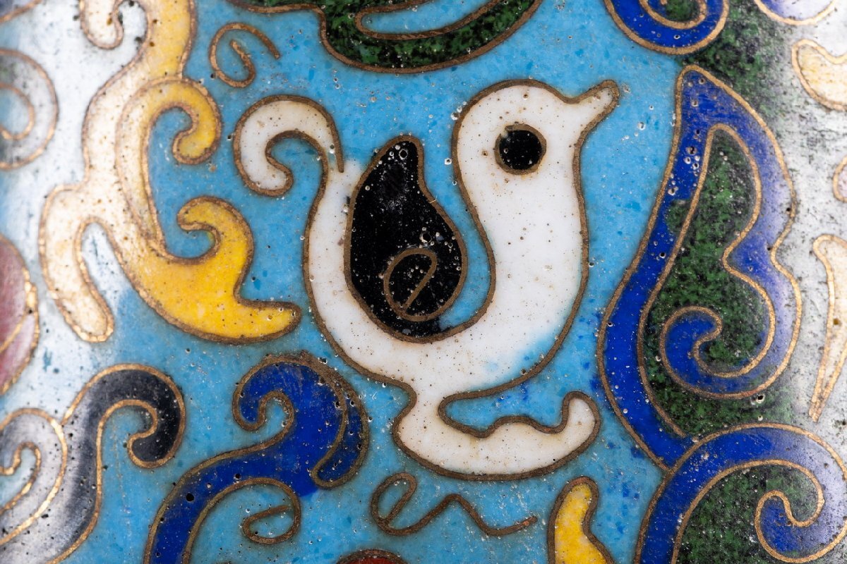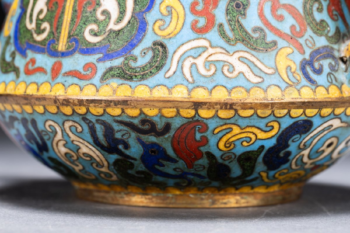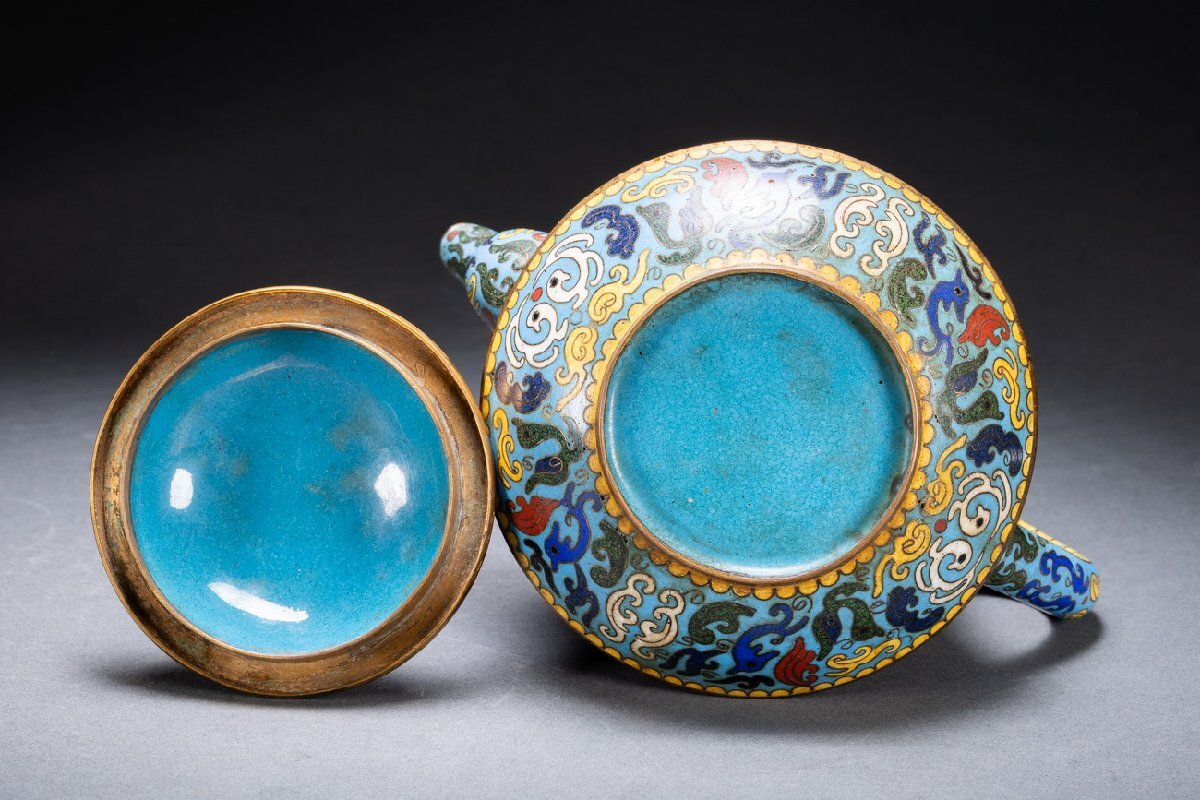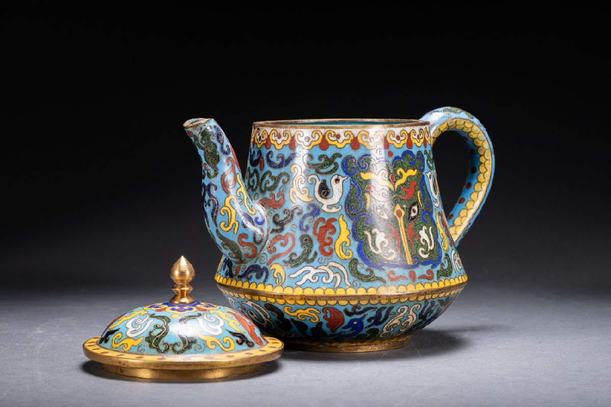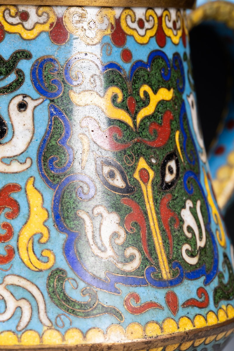 【雲錦】某有名オークション購入 時代物 中国伝来 景泰藍 饕餮面持壺 共箱 古置物 古擺件 古美術 時代コレクションWK10-28S2