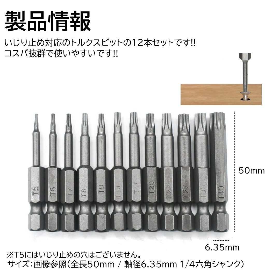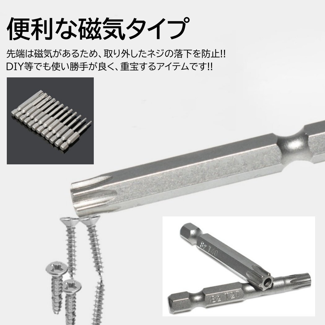 12本 トルクスビットセット いじり止め T5T6T7T8T9T10T15T20T25T27T30T40 ドライバー ビット 六角 6.35mm 磁気吸着 電動ドライバー ビット