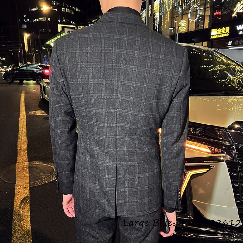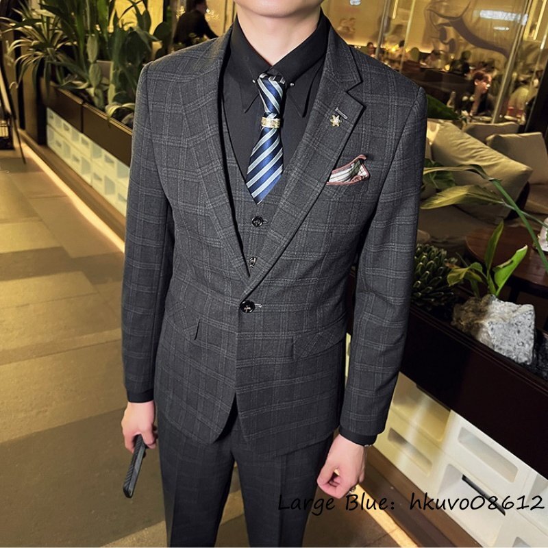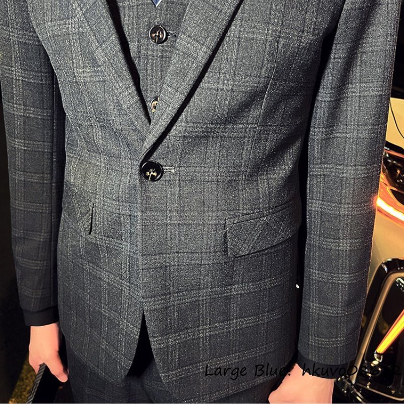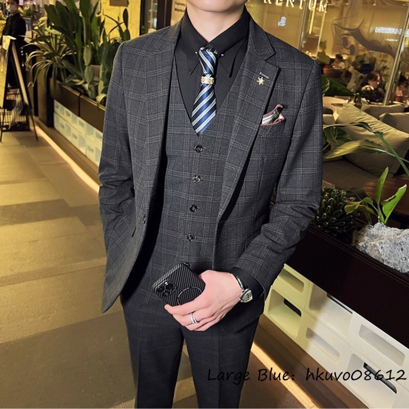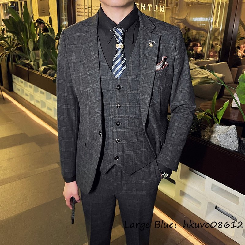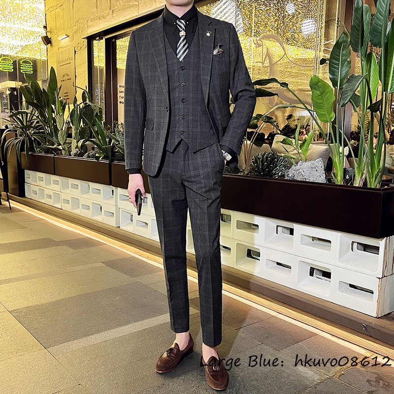 定価6万■新品 スーツセット ビジネススーツ メンズ チェック柄 スリーピース 一つボタンシングルスーツ 三点セット フォーマル グレー 3XL