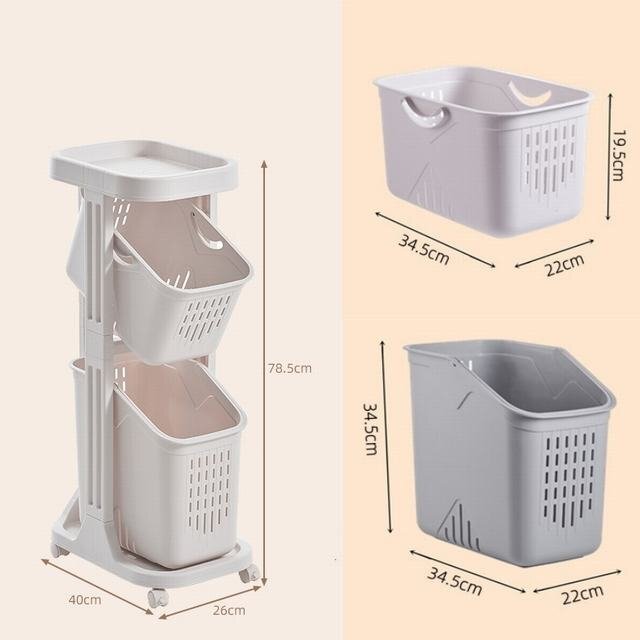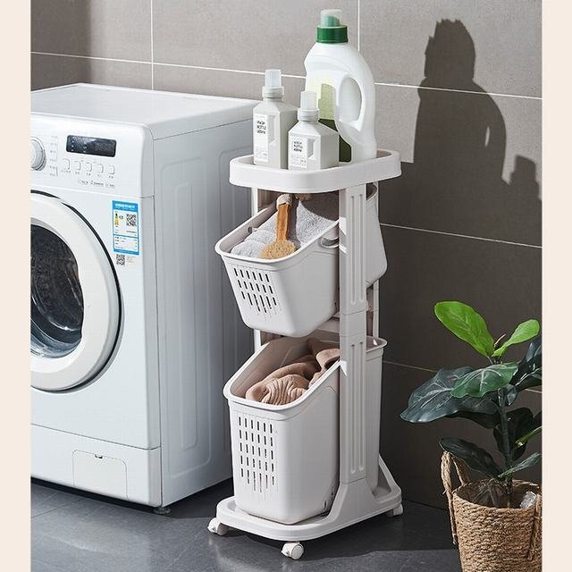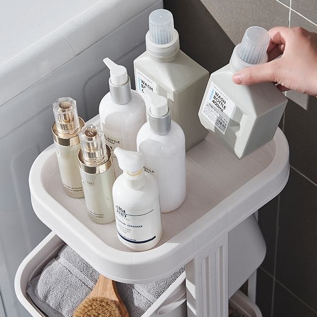 デッドスペースを活用できる3段ラックです。洗濯物やバスグッズなど分けてご利用いただけます。Stop機能付きのキャスターがあり,場所の固定、移動が楽にできます。
