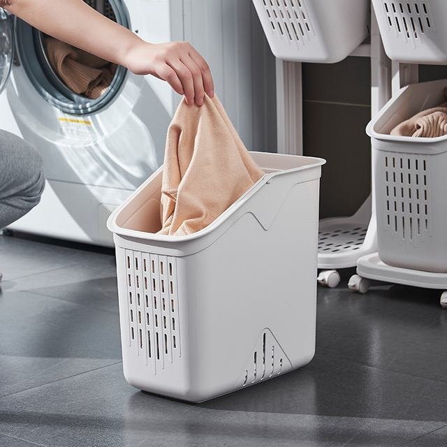 ランドリーバスケット スリム キャスター付き3段 大容量 斜め 角形 天板付き 収納バスケット 収納ケース 収納ボックス 洗濯かご 組立式