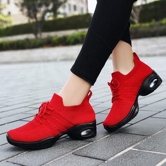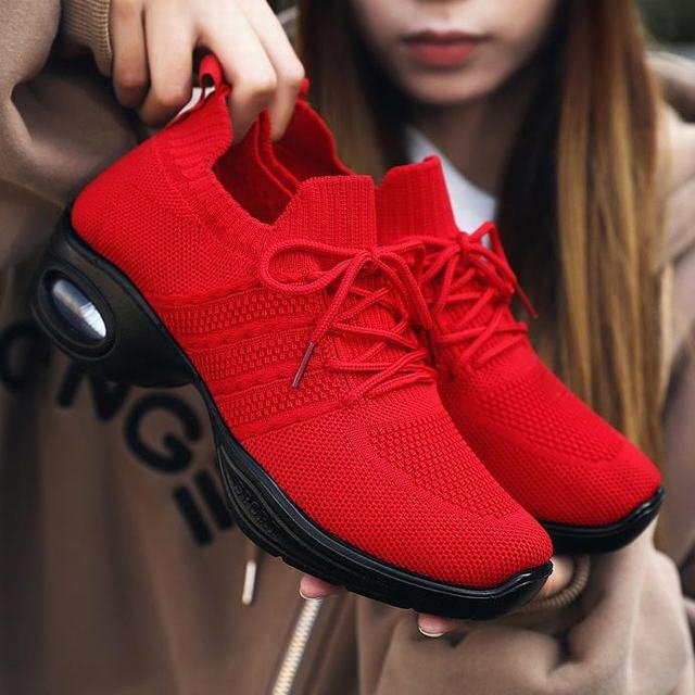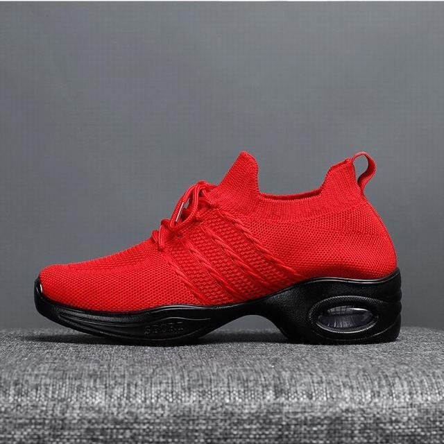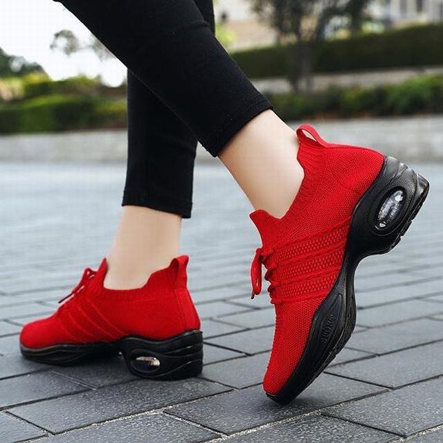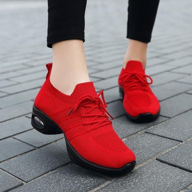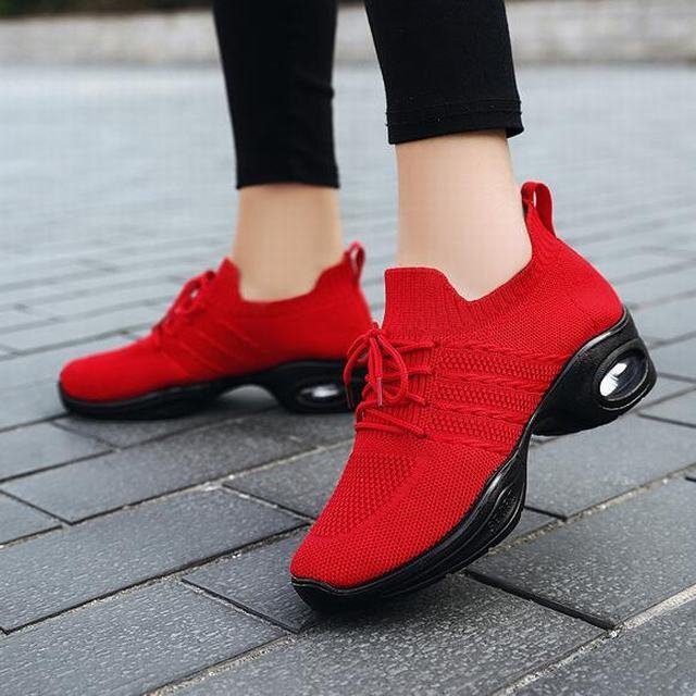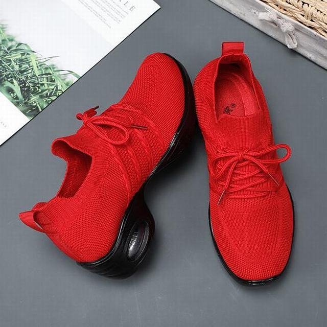 ★スニーカー レディース 春秋 メッシュ レディース靴 エアースニーカー スポーツ アウトドア 通気性 通勤 軽量 レッド24.5cm