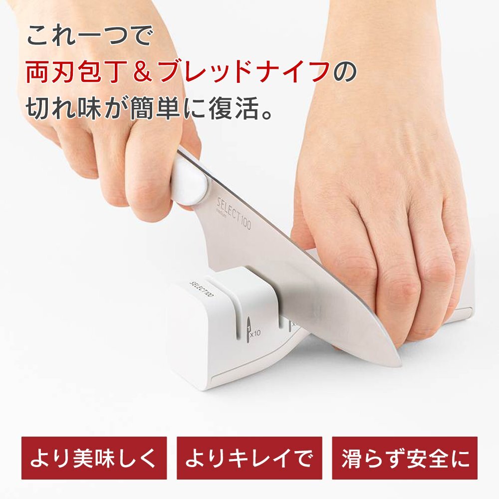 | 両刃包丁もパン切り包丁もラクラク研げる 左利きでも安心、安全&簡単設計 |