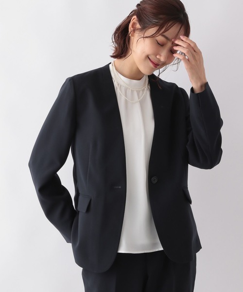 キーワード:ジャケット ノーカラージャケット レディース 無地