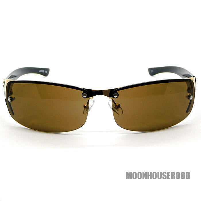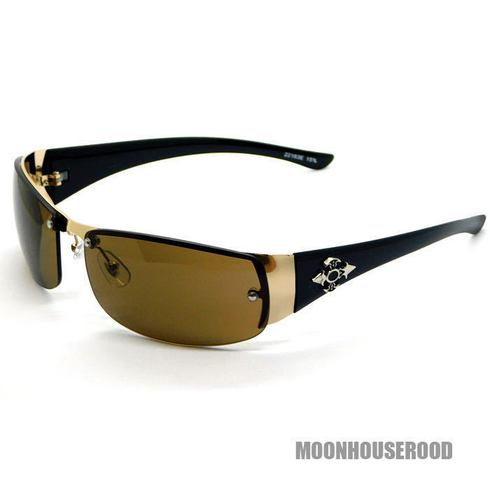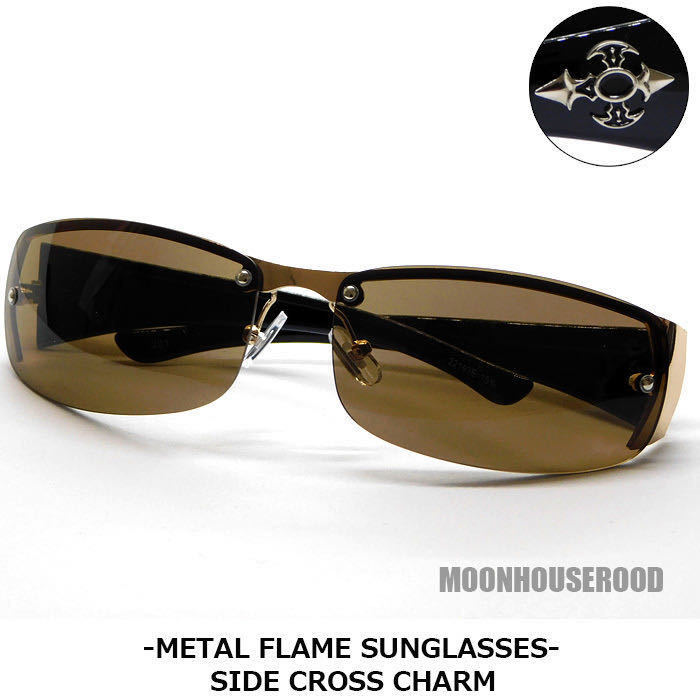 送料無料 メタルクロス付き オラオラ系 サングラス メンズ UVカット バイカー系 ロック系 ハード系 伊達眼鏡 メガネ ブラウン 新品■