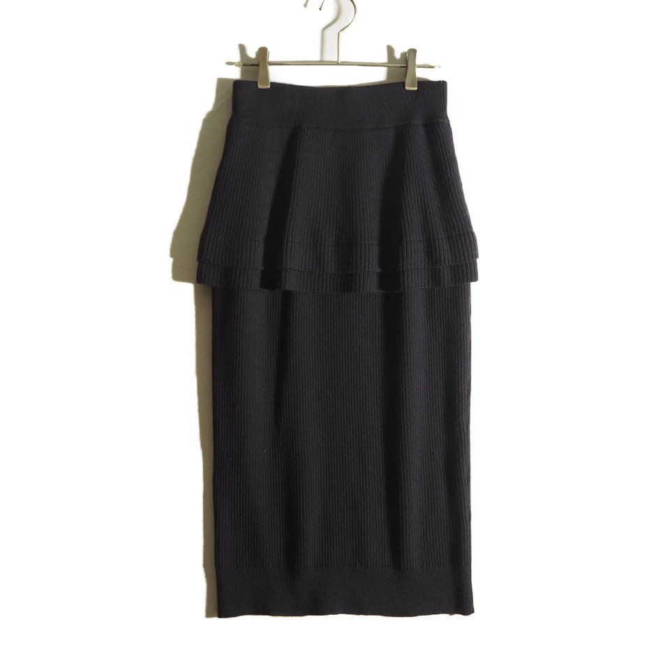 P8139A14 ▼ENFOLD エンフォルド▼ レイヤード ウールニット スカート ブラック 38 / 300AA371-2430 ミモレ丈 ニットスカート 黒 秋冬