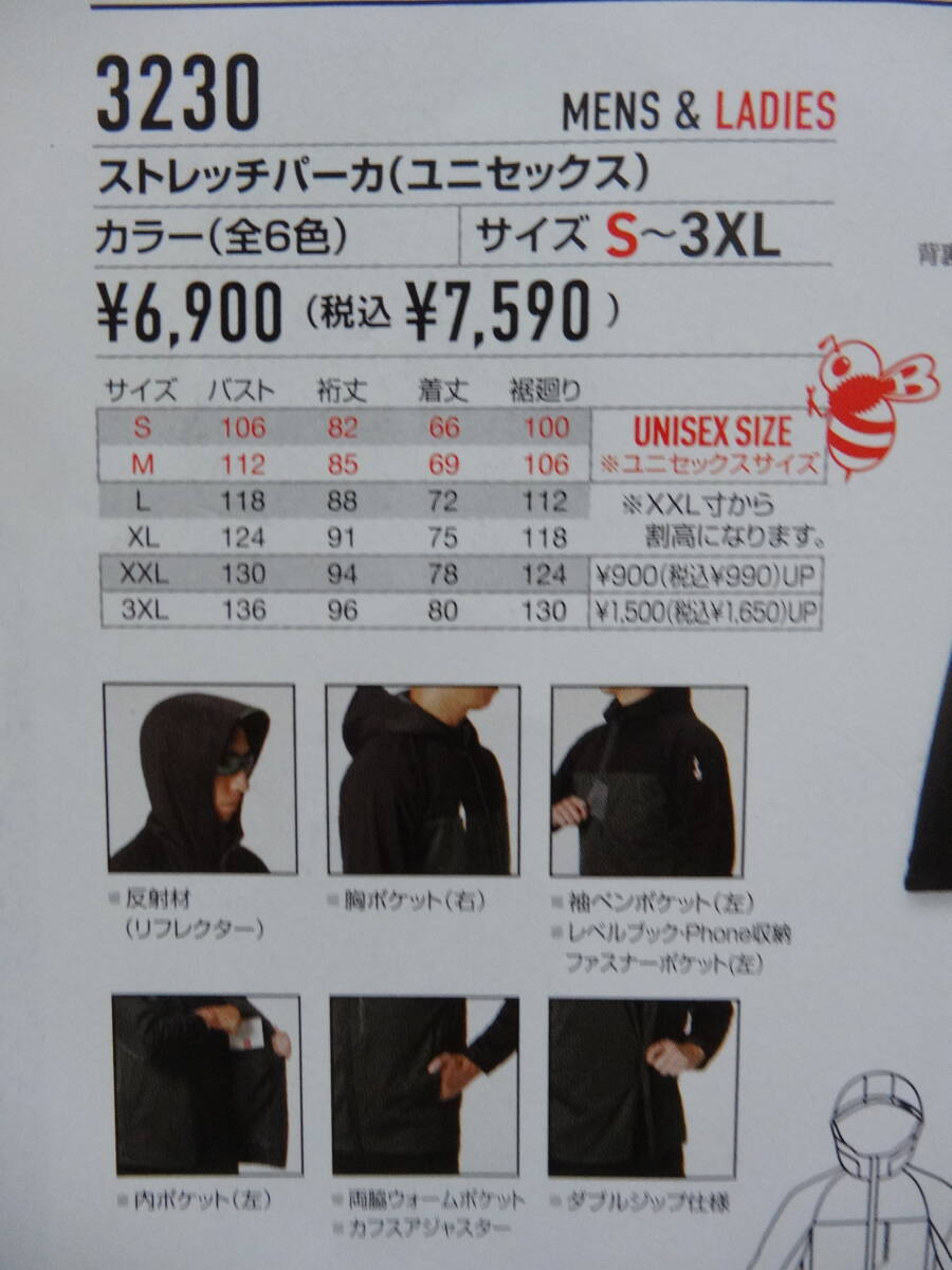 バートル3230 ストレッチパーカー ネービー M 寸 3800円(税込み)