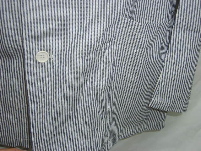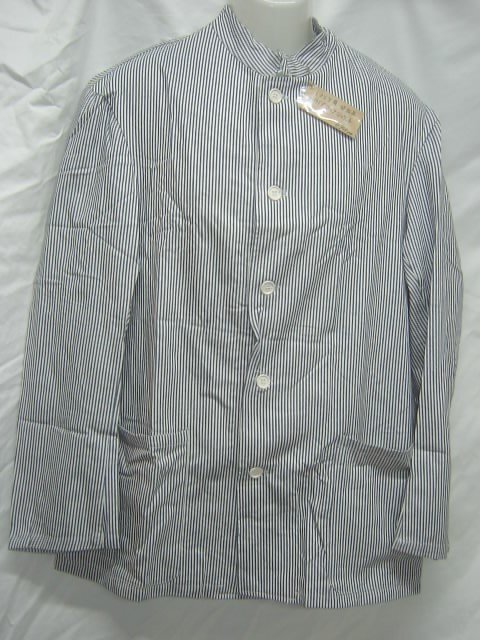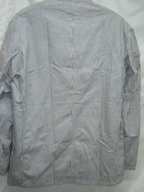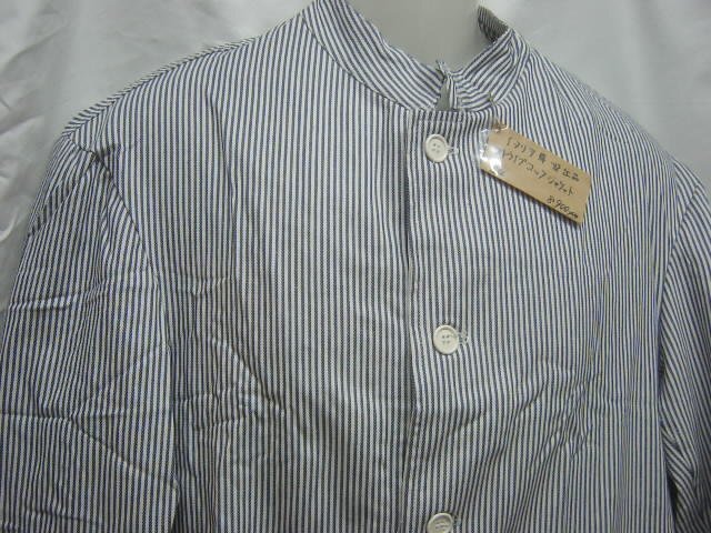 イタリア軍ストライプ柄のコックジャケットです。スタンドカラーパッチポケットが左右に付きます。 細いピッチに配列されたブルーカラーのストライプがスタンドカラーのジャケットでなりがちな、シックなイメージを和らげ、カジュアルなスタイルに馴染むアイテムになっています。 ●素材:コットン ●状態:デッドストック サイズ表示は56で着丈が85センチ程度、身幅66センチ、肩幅54センチ、袖66センチ程度でメンズXXLサイズ程度です。 沖縄離島を除く全国500円でお送りいたします、落札価格にプラスでお願いいたします。