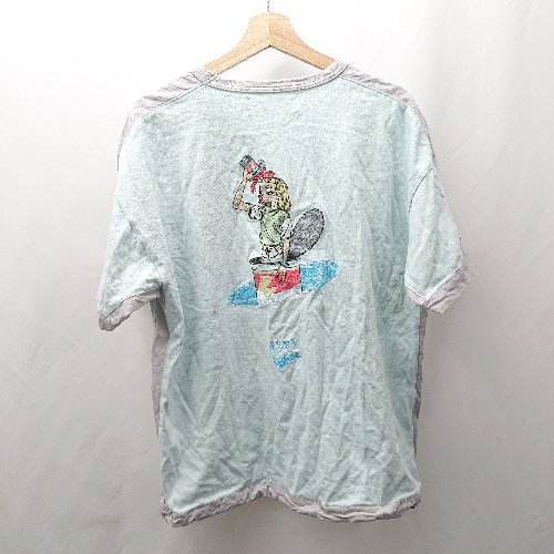 ◇ ⊂ Left Alone レフトアローン 刺繍入り 半袖 Tシャツ サイズL ライトブルー レディース E