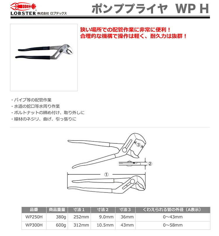 LOBSTER(エビ印) ポンププライヤ WP300H