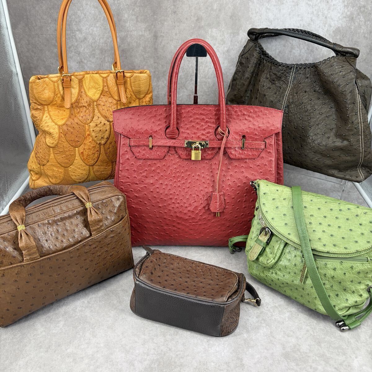 | オーストリッチバッグまとめ⑦ 6点セットになります。 状態は様々になりますが、使用できないほどの傷み、べた付きなどはないと思います。 あくまで簡易検品になりますので、写真をご確認いただき、現状優先でご検討ください。 | ||