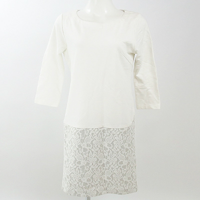 | レースとカットソー切替のワンピース ストレッチが効いているので動きやすく 着心地◎ 裏地つきで透けにくくなっております。 バスト約92cm 着丈約80.5cm 袖丈約43.5cm 肩幅約36cm ウエスト約88cm ヒップ約94cm 【サイズ】:(1) 【素 材】:(綿100% レース綿70% ナイロン30% ポリエステル100%) 【 色 】:(白) 【程 度】:(S) **管理番号** 2507-20150430-001 424 035 | ||||