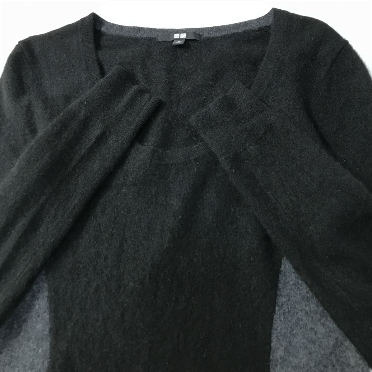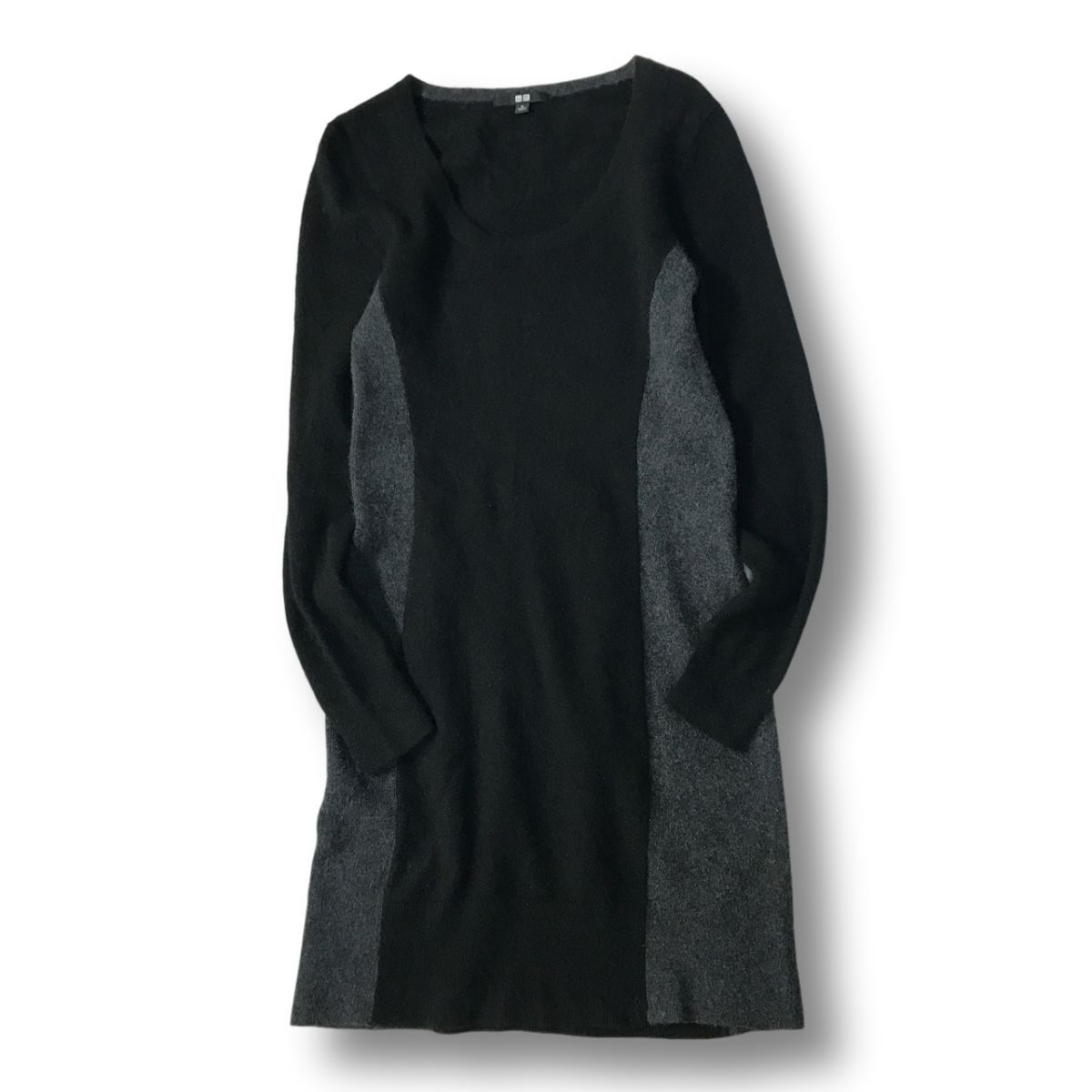 《良品◎》UNIQLO ユニクロ★カシミヤ100%*ワンピース*ブラック/グレー*サイズM(LA3050)◆S60
