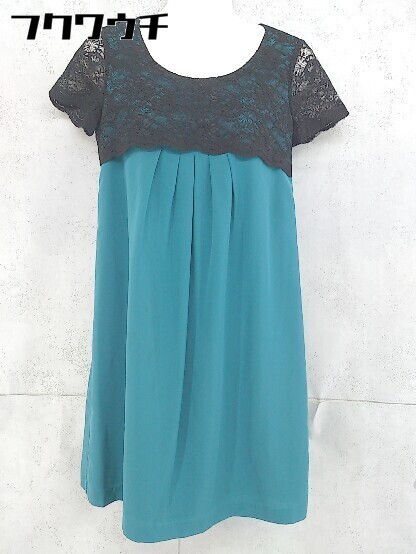 ◇ INDIVI インディヴィ 半袖 ミニ ワンピース サイズ36 グリーン系 ブラック レディース