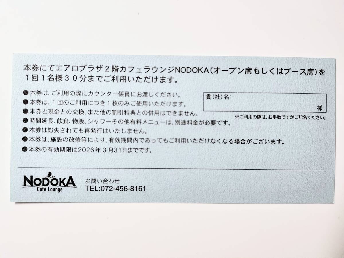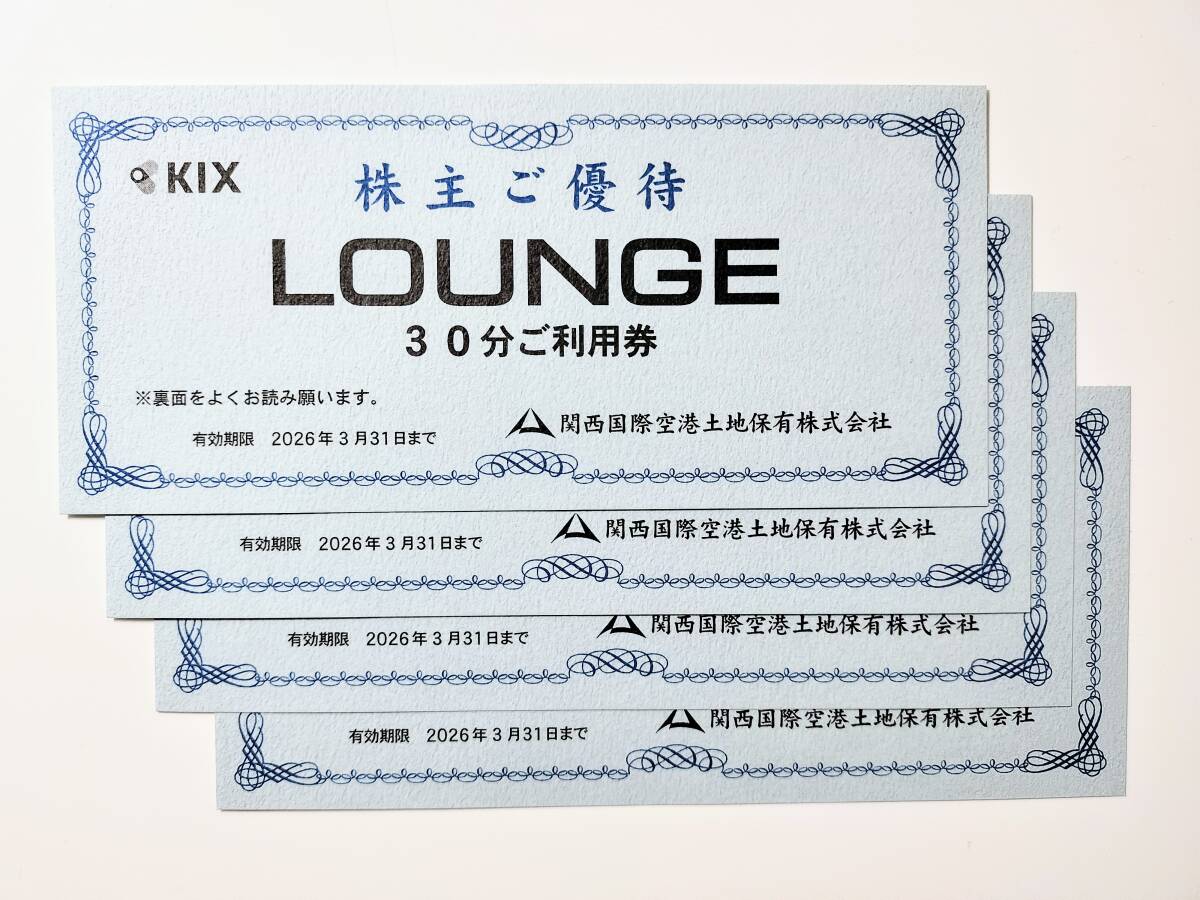 関西国際空港の株主優待「KIXエアポートラウンジ NODOKA 30分ご利用券」4枚セットです。